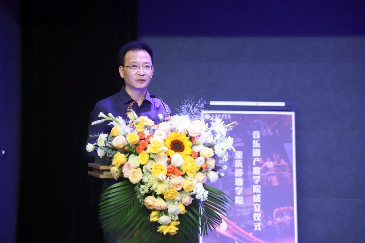 我校人事处黄强处长宣读音乐剧产业学院成立及人事任命文件,宣布邹贤达兼任音乐剧产业学院首任院长。