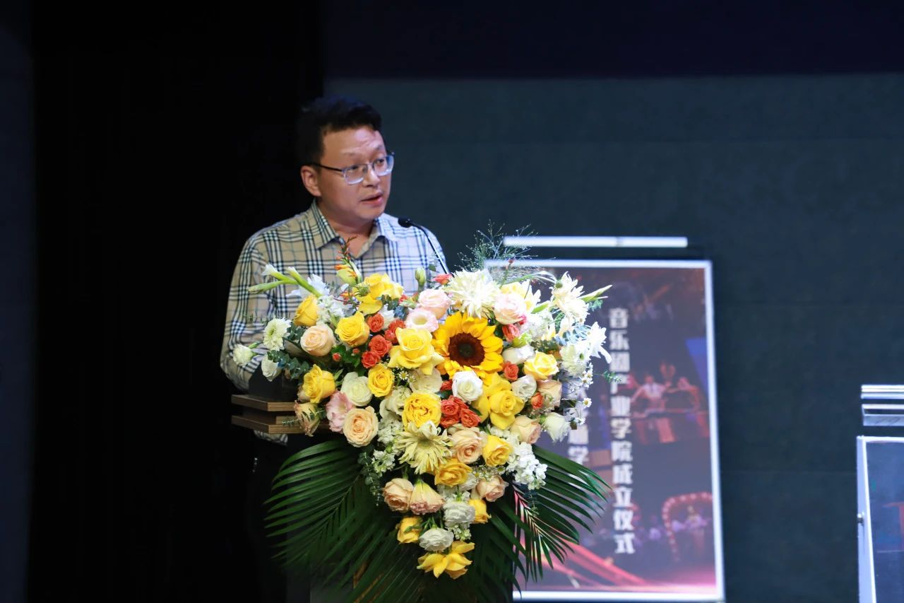 校长吕翊发表讲话。他强调,音乐剧产业学院的成立,是我校“四位一体双院制”特色育人模式的重要一环,是完满教育的全新尝试,也是我校十年砥砺前行,对艺术教育事业长远发展的必然成果。学院的成立也为“信息产业商学院”的“非科班”学生提供了更加广阔的学习平台、实践平台以及多元的展示平台,学校将进一步深化与三亚天涯蓝海度假酒店的产学研合作,加快教学实践成果转化。