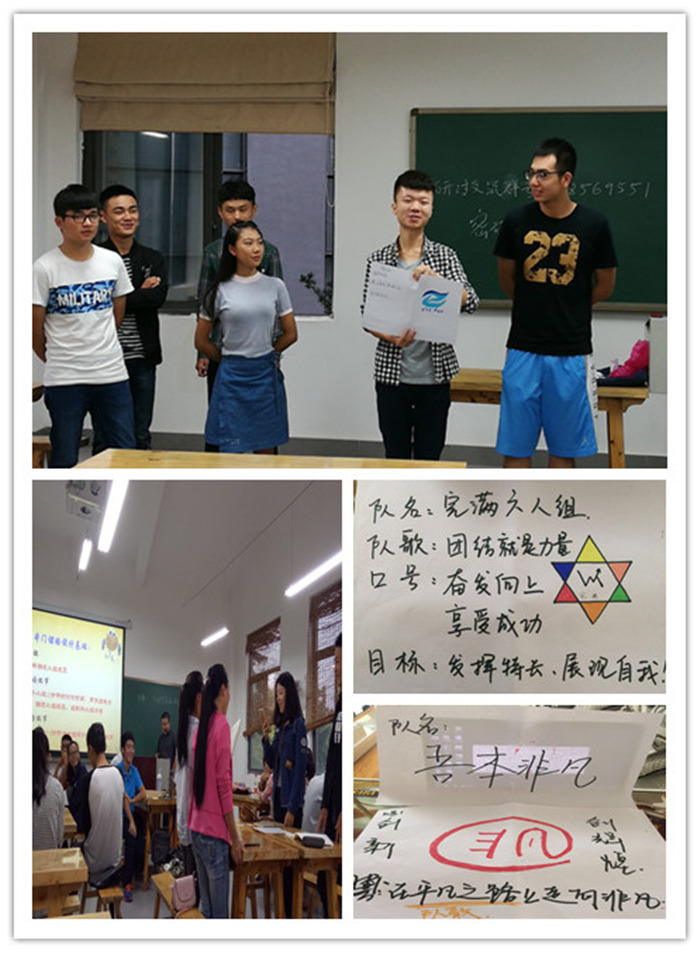 在今年的第一次新生研讨课上,管理工程系的几位老师各展其教学技艺,使得几门课程风格迥异、各自精彩。比如为了增进大一新生彼此之间的了解和初步形成他们的团队意识,几位老师都利用抽签的方式对自己的班级进行了分组,并让各小组在规定时间内确定队名、队歌、口号以及相互熟悉,然后再按小组进行展示。在这一环节,我们发现有的小组很活跃,有的小组还略显拘谨,但所有的同学都是一种跃跃欲试的状态。在小组展示环节,同学们脑洞大开的思维方式的确让我们佩服不已,各种有趣的队名或队歌引起了全场阵阵笑声和掌声。比如刘贵容老师班上一个纯男生组成的小组的队名是“爷们儿队”;林毅老师班上一个小组的队名是“移通老司机”等等,现场的气氛达到了一个小小的高潮。