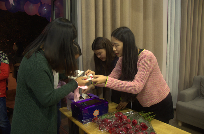咖啡厅内布满了许多温馨的装饰,一进门一把娇艳的玫瑰摆在门口,桌上摆满了琳琅满目的水果糕点,进入内室,一个个桌子上布置的恰到好处,男女青年教师们陆续的走了了过来,他们的脸上既有着属于老师的气质与严肃,又有着20多岁青年男女的羞涩。