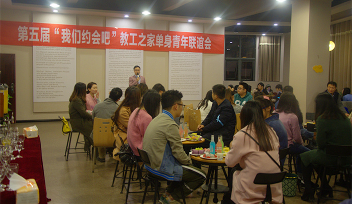 经过主持人热情又机智的暖场,男女教师们渐渐的抛开了早先的拘束,变得活泼起来。接下来是游戏环节,在联谊活动的游戏环节中,男生的自信,女生的大方,给全场留下深刻印象。虽说女生的有些要求很特别,但是心仪者在全场的撮合下,大多都能敞开心扉,互动连连。但是,无论成功与失望,积极参与活动的单身男女都是很愉快的。