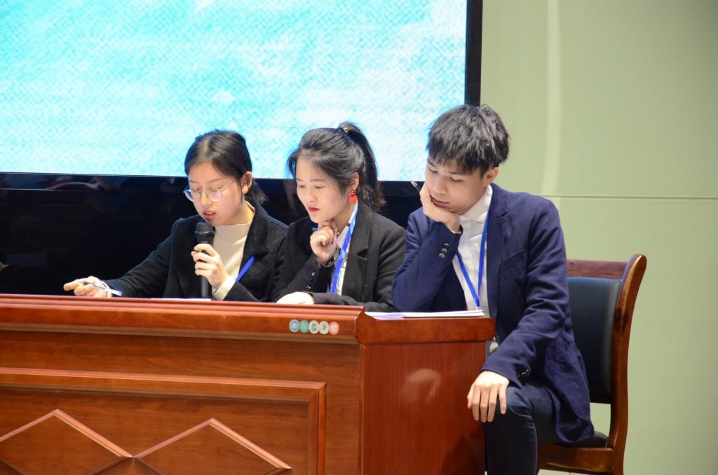 首轮抽签中我们抽到的演讲的题目为“超人还是科学怪人?”(„Superman der Zukunft“ oder „Frankenstein“?),基因技术的发展改变人类社会,是发展演变为超人还是弗兰肯斯坦一样的科学怪物对人类进行毁灭?谭浩同学从2018年在中国诞生的首例基因婴儿谈起,重点阐述基因技术潜在的各种威胁,明确自己的论点为反对人类基因改造,否则会造成两极社会。论点清晰,论述准确,举例详尽,评委提问环节中,回答切中要点,获得了作为评委的DAAD专家Sabrina高度好评。第二轮视频配音环节选取动画片《小猪佩奇》,尽管第一个出场,但是选手们流利的配音、准确的表达、温馨的氛围获得满堂彩。