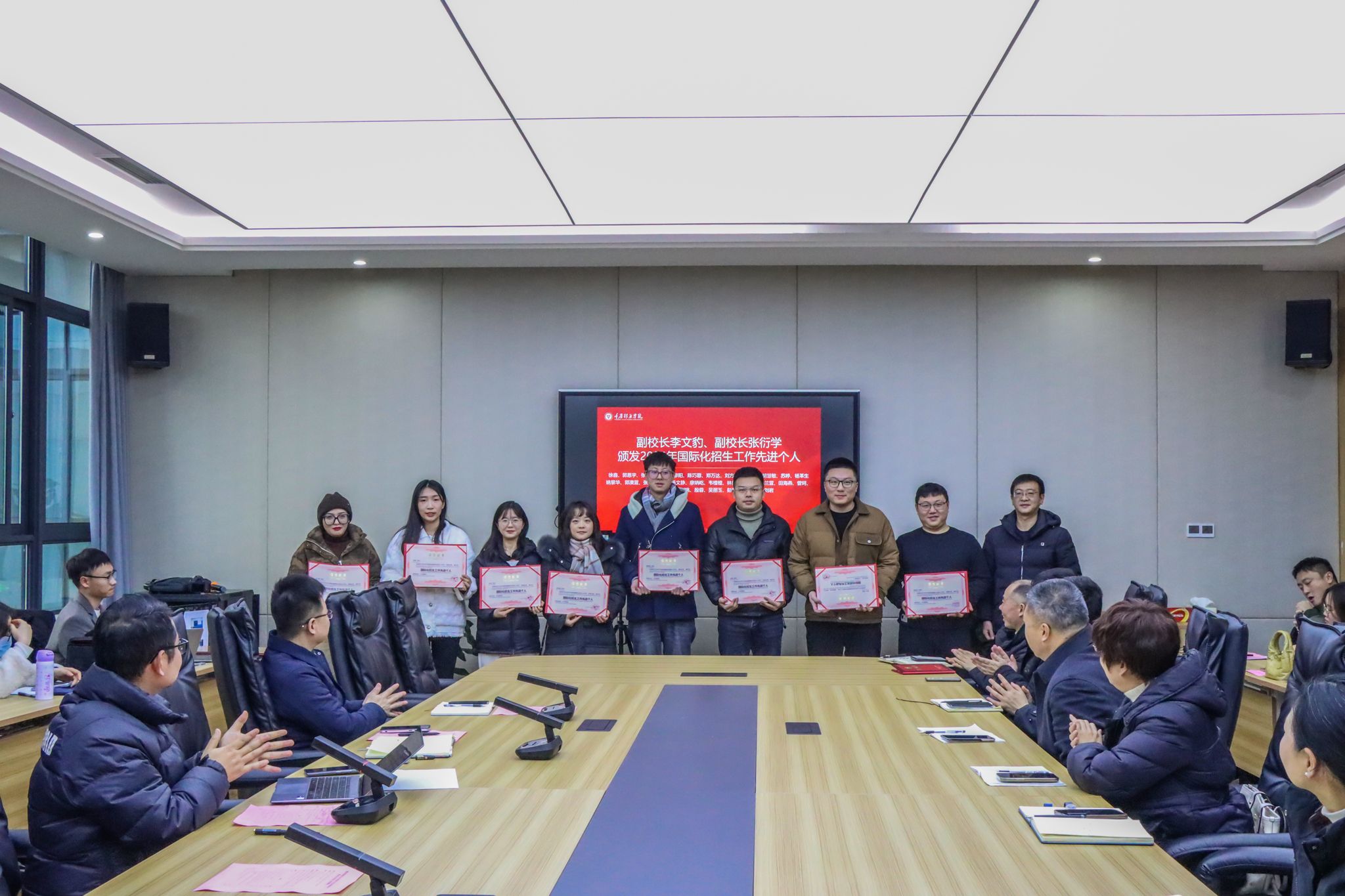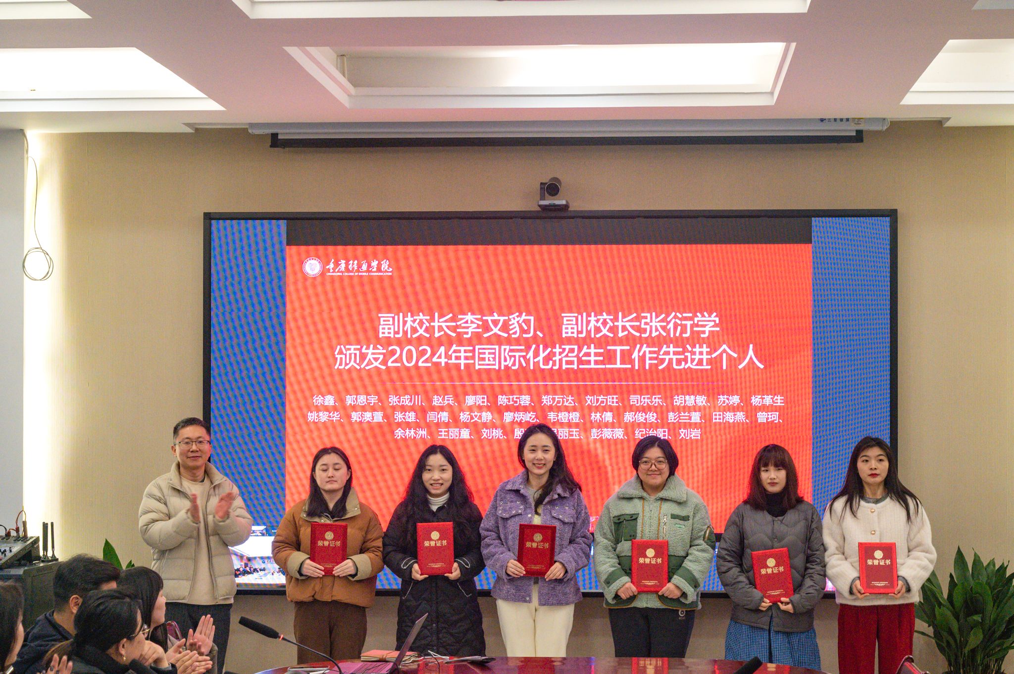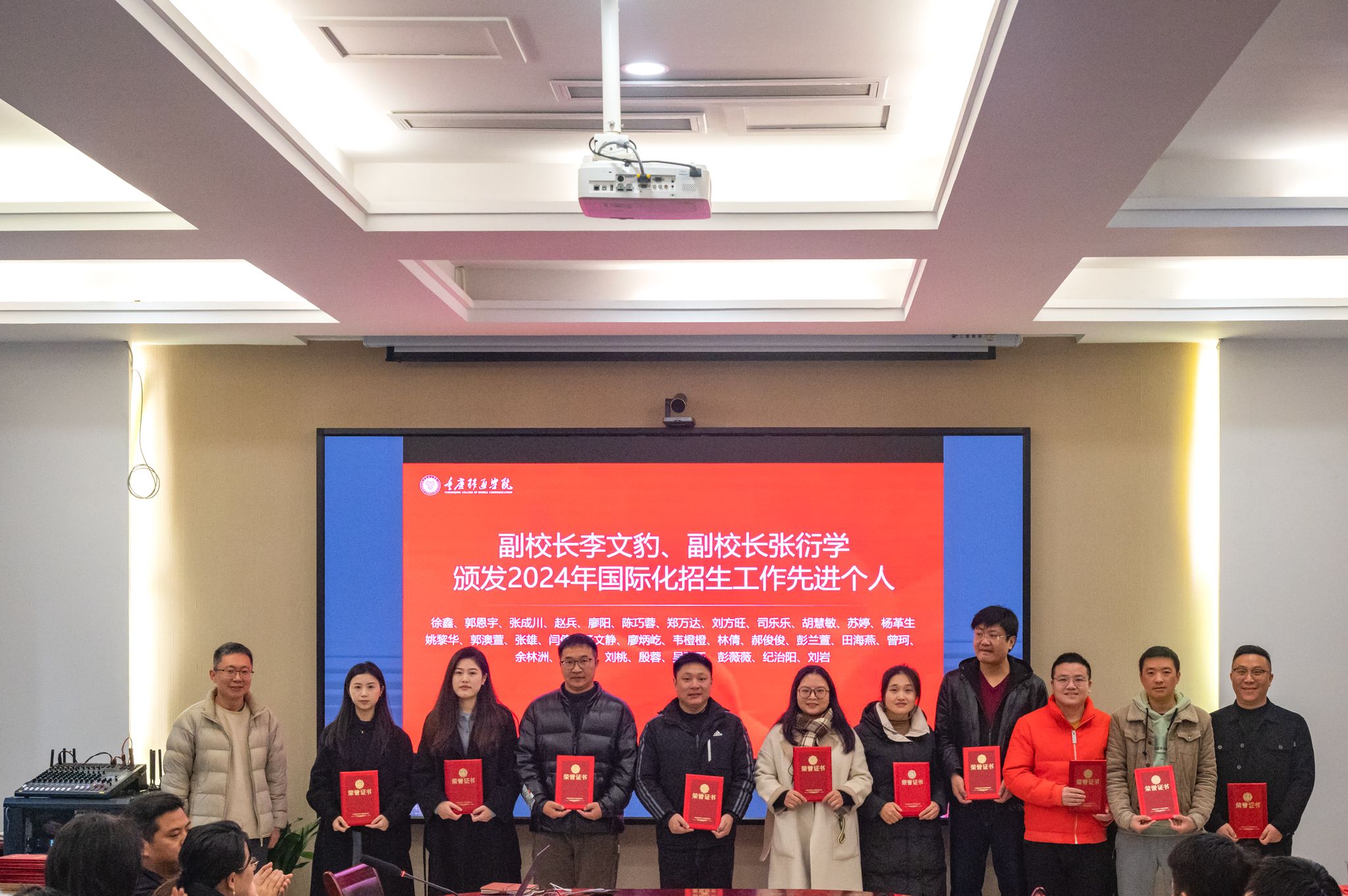 表彰环节,常务副校长周伟宣读了《关于表彰2024年招生工作先进个人的决定》及《关于表彰2024年国际化招生工作先进个人与集体的决定》。在热烈的掌声中,党委书记何先刚及副校长李文豹、张衍学、陈仲华等领导为招生工作先进个人及国际化招生先进集体、先进个人颁发了荣誉证书,表彰他们在招生工作中的卓越贡献。