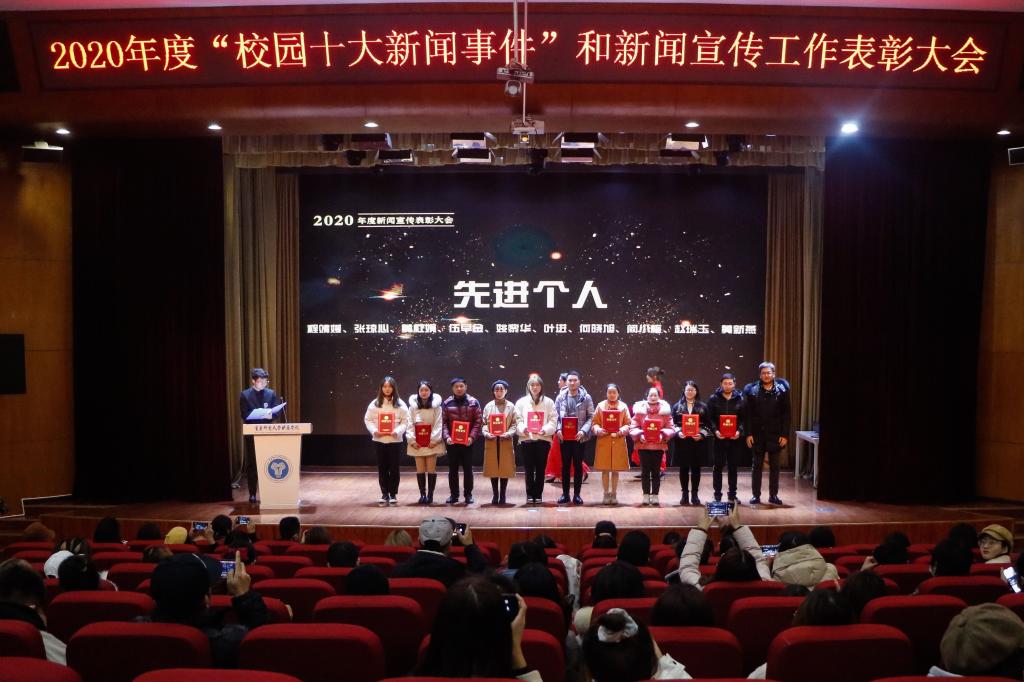 下里巴人剧场,大家翘首企盼,2020年度“校园十大新闻事件”发布及新闻宣传工作表彰大会在这里举行。