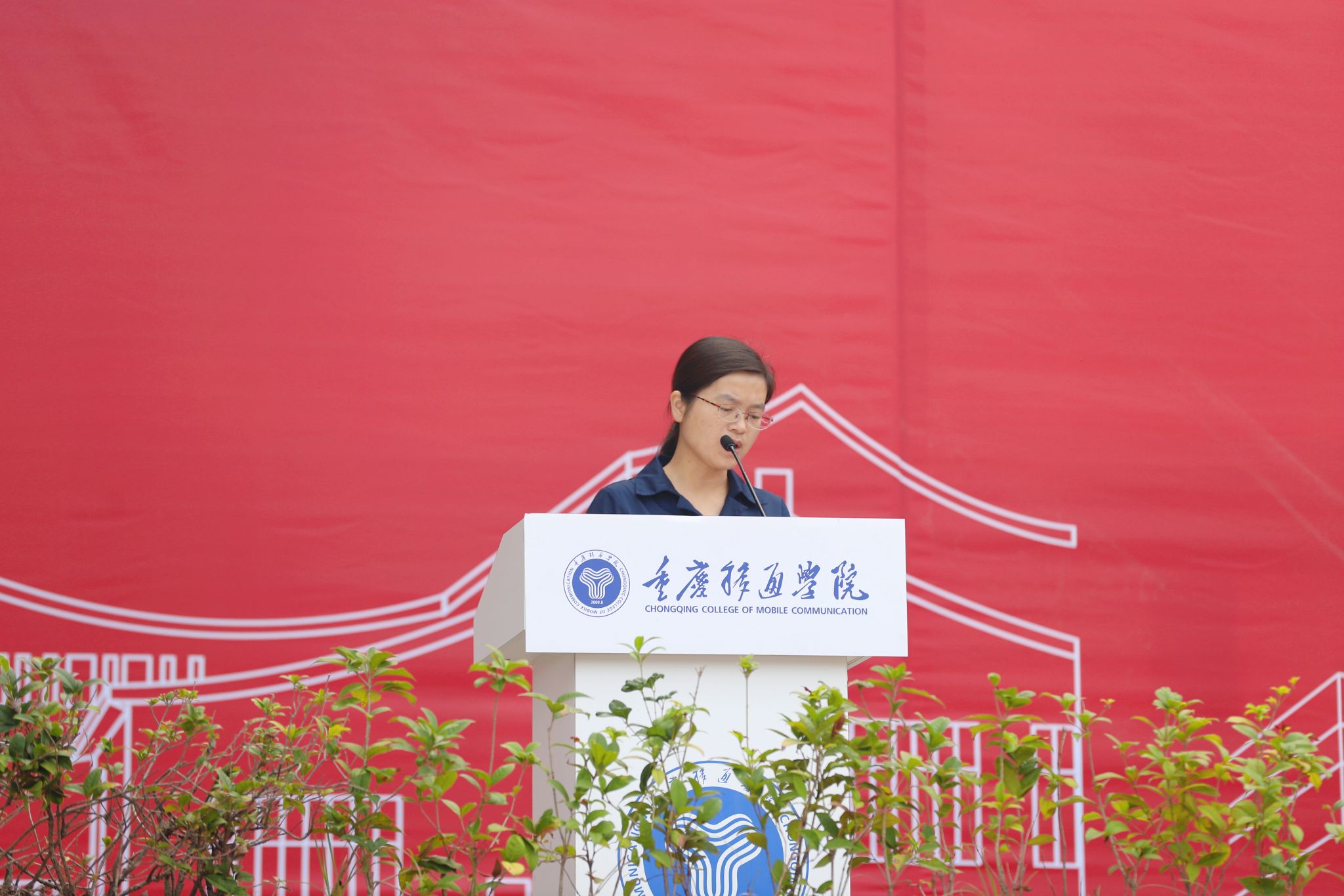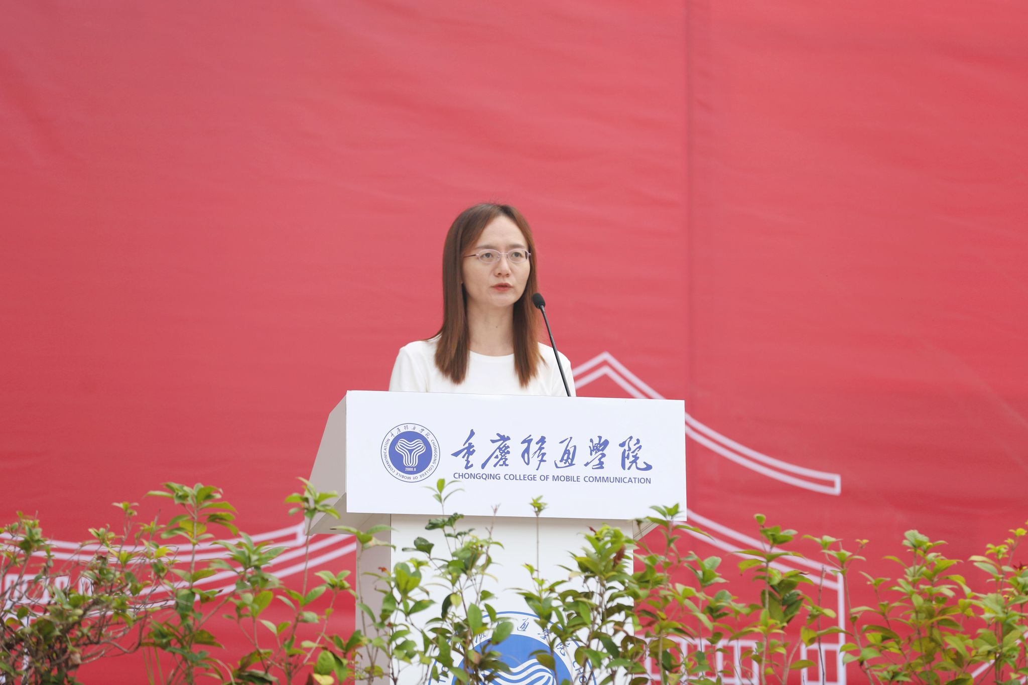 智能工程学院电气工程教研室主任,重庆市一流课程负责人晁晓洁副教授作教师代表发言。她提到,来到移通十年间,见证了无数学生的蜕变和成长,学生的成长也成就了老师的成长。大学是很多人一生中最后一次可以奢侈地以年为单位用来学习的人生阶段,也是人生第一次真正有机会以自己的意愿塑造自己的阶段。希望同学们怀揣着让你感到坚持就是幸福的梦想来到移通,站在我梦开始的地方,展示青春、释放活力,认真地把握好每一天,努力做到:学会做人,学会做事,学会学习,学会生活,以青春奔赴万丈理想,书写无悔青春!