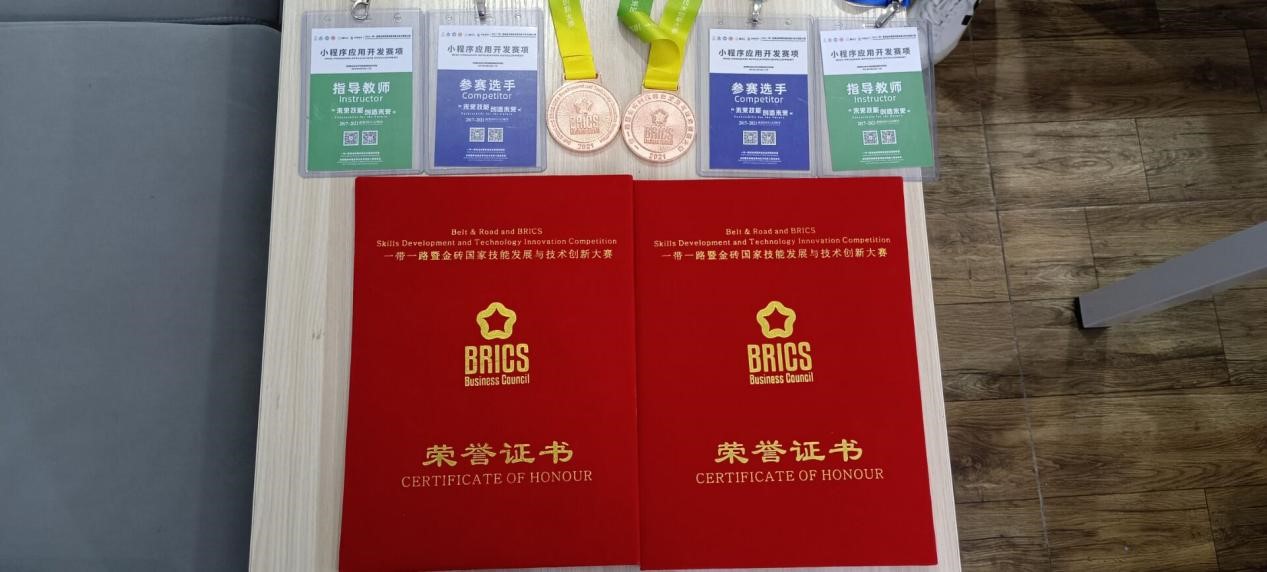 10月16日,由金砖国家工商理事会中方理事会主办,中国发明协会、教育部中外人文交流中心联合主办,金砖国家工商理事会中方技能发展工作组承办的2021一带一路暨金砖国家技能发展与技术创新大赛(以下简称金砖大赛)之“小程序应用开发赛项”决赛在深圳拉开序幕。我校大数据与软件学院19级计算机科学与技术专业杨延波与软件工程专业彭伟同学在指导老师卢星儒、李静毅、吕云山的带领下,经过赛前的积极备战与练习,在比赛中沉着应战、不言放弃,最终两组选手均获得全国总决赛三等奖的优异成绩。