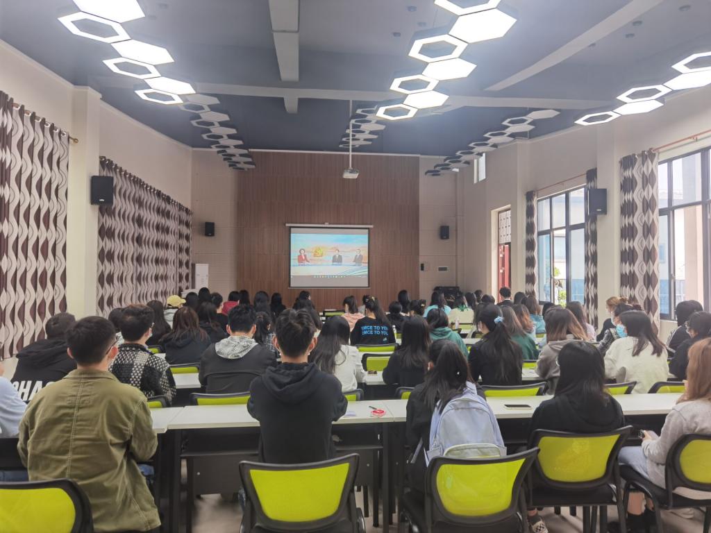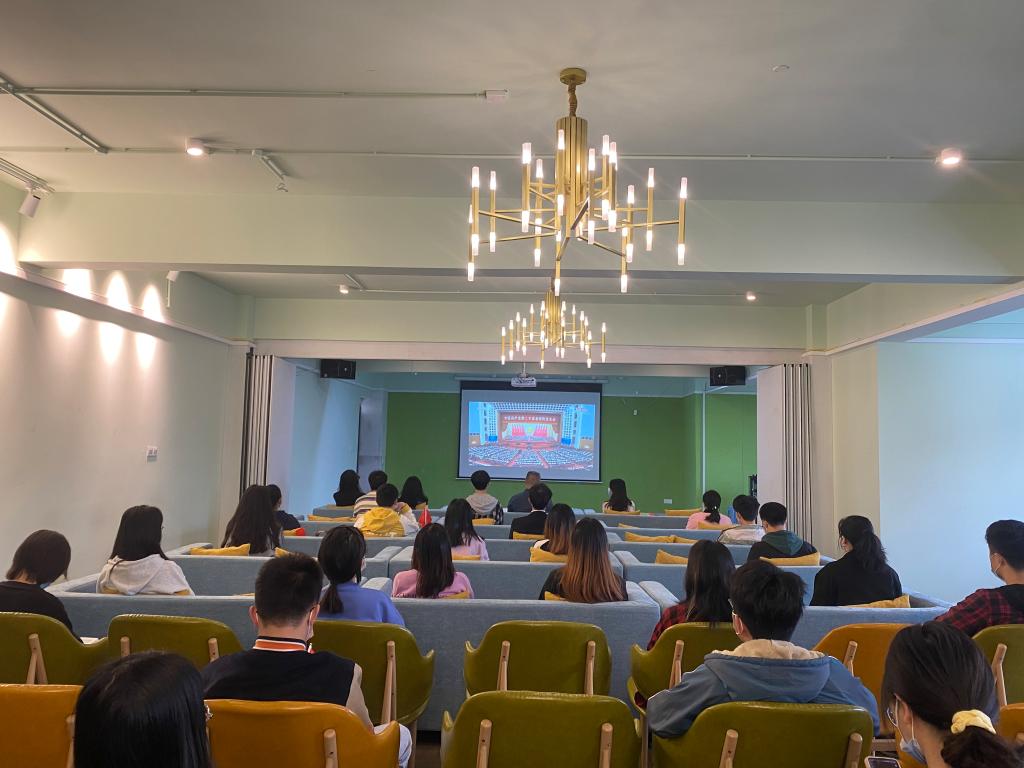 学校部分共青团干部在合川校区下里巴人剧场收看直播。