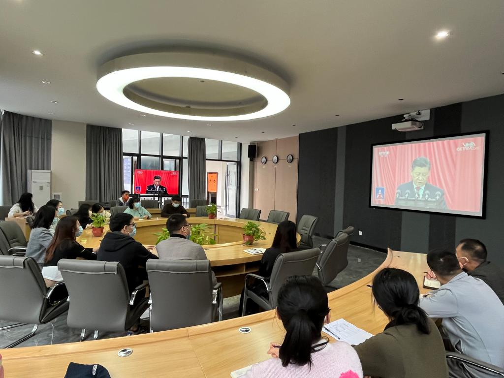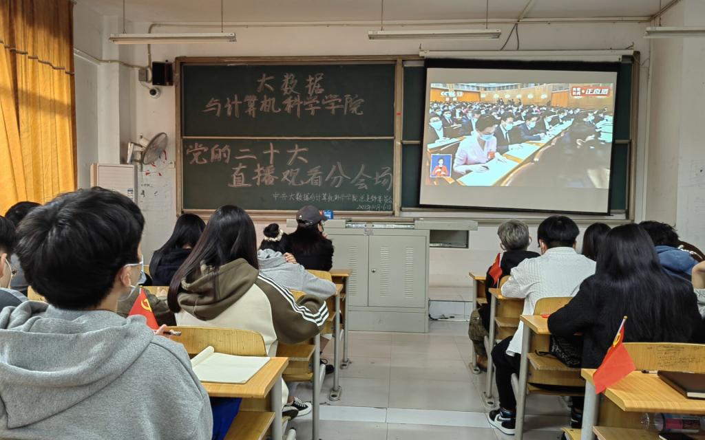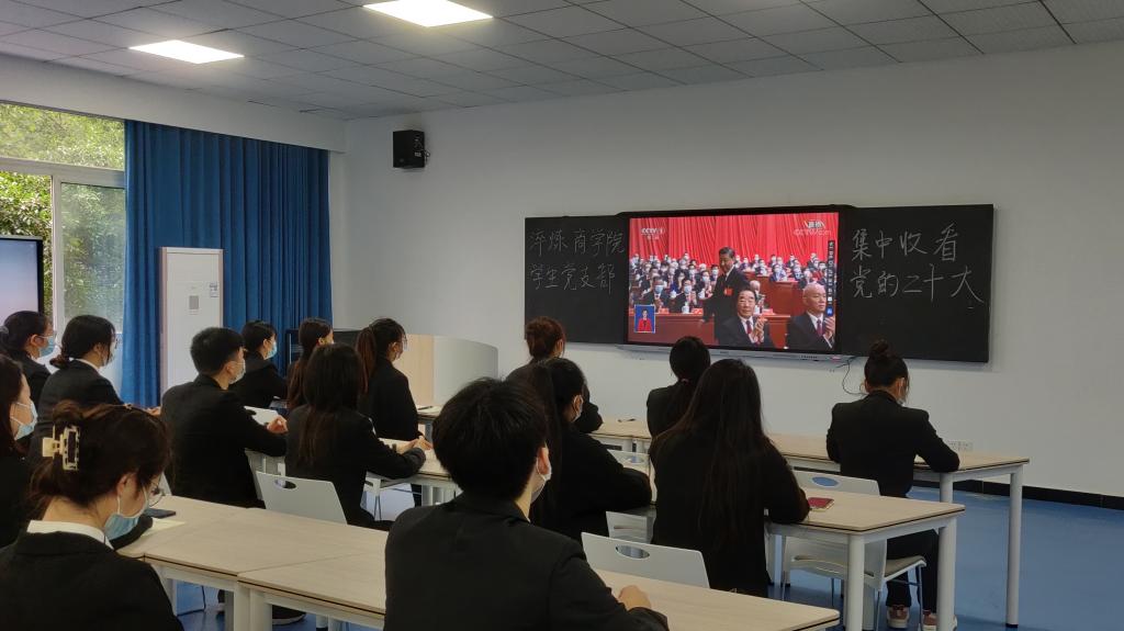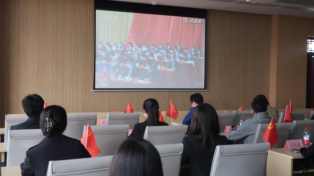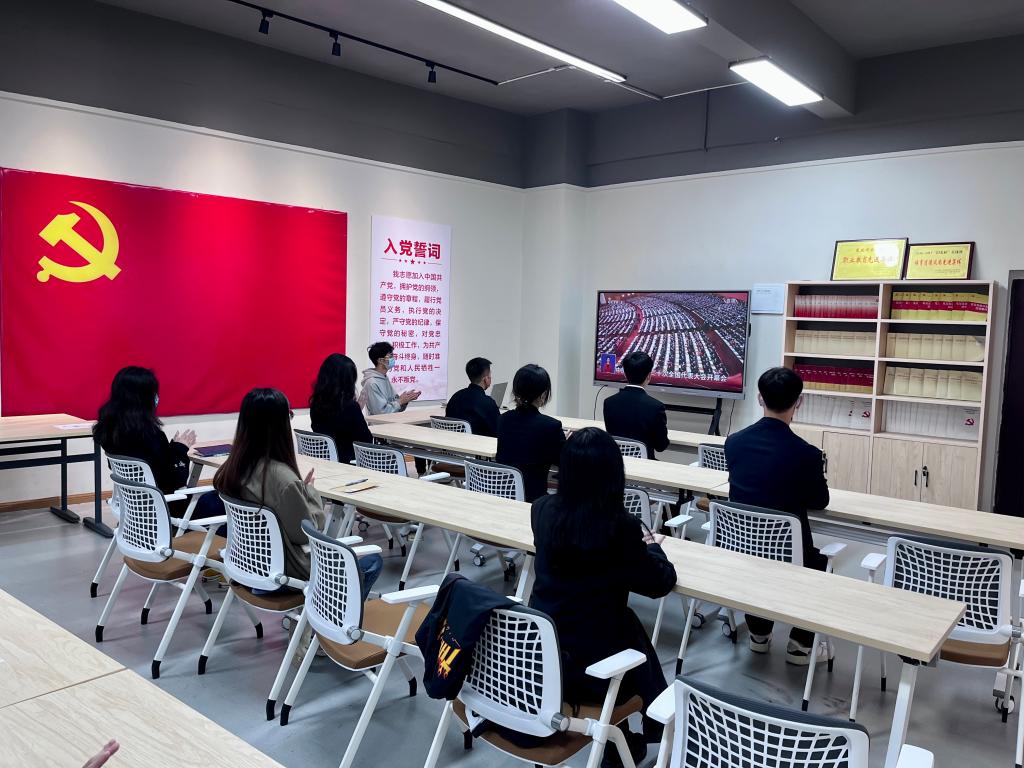 各党总支带领支部师生在各会议室、教室、书院功能室一同收看直播。