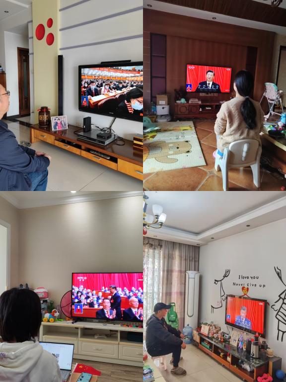 部分师生在宿舍、办公室、家里通过电视、手机等终端设备收看大会直播,密切关注大会盛况。