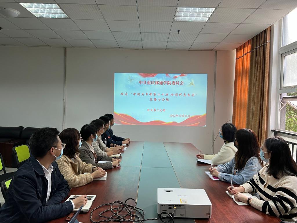10月16日上午,中国共产党第二十次全国代表大会在人民大会堂隆重开幕,重庆移通学院师生高度关注党的二十大,纷纷通过电视、网络媒体等多种途径收看开幕会盛况。学校在合川、綦江两个校区组织在校师生在会议室、教室、剧场、书院功能室等二十余个会场集中收看开幕会直播,认真学习习近平总书记向大会所作的报告。