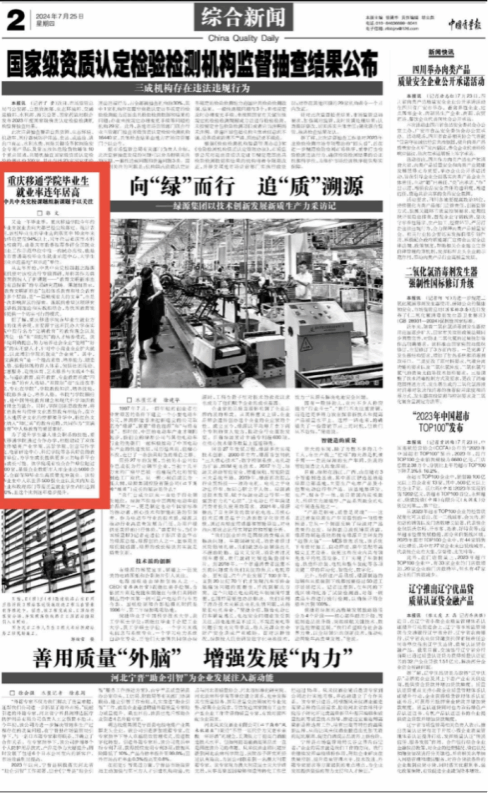 7月25日,国家级权威纸媒《中国质量报》在2版以《重庆移通学院毕业生就业率连年居高》为题,报道肯定了我校毕业生在就业方面的优秀表现。