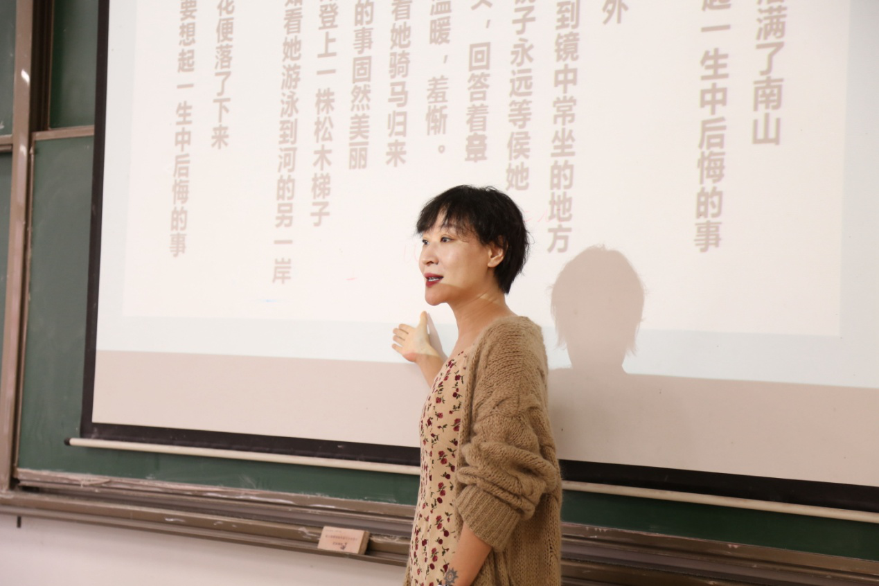 “只要想起一生中后悔的事,梅花便落满了南山。”创意写作学院的郭晶晶老师在5403教室里深情并茂地朗读着张枣的《镜中》,同学们也大声地跟读着,悦耳的读书声从教室里传出来,引得外面的人驻足。在这门《现代诗导读》课中,郭老师向同学们介绍了一些非常有才华的诗人;同时为了增加课堂的趣味性,郭老师还让同学们现场创作诗歌,互动性极强。来自大数据与软件学院数字媒体技术的敖莲同学在课后说道:“上了这门课程,不仅了解了许多诗人,增加了我的知识阅历,还让我发现了原来我还有创作的才华,被老师夸的感觉太爽了。”