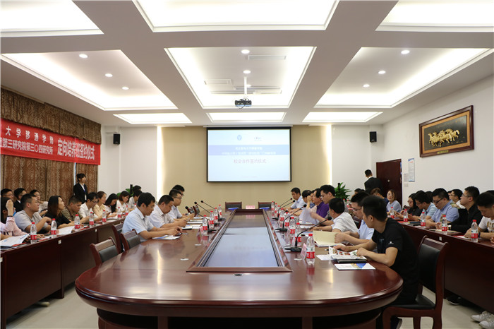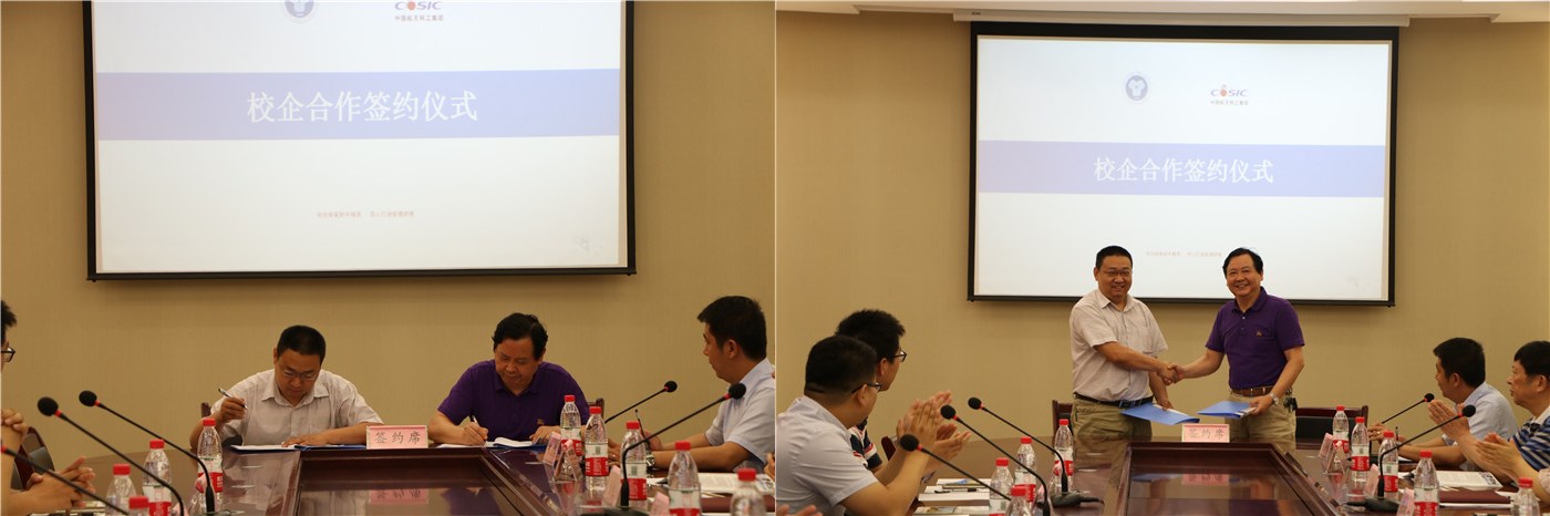 6月21日,我校与大型知名央企中国航天科工集团第三研究院第三〇四研究所(以下简称“304所”)签订校企合作协议,在我校双体系卓越人才教育基地开设提前录用定向培养班,在双体系形成了3+1+1(3个项目部负责职场精英培养+1个定制班负责名企定向输送+1个开发中心负责技术高地打造)的人才培养全新局面,为在校学生搭建了高质量的就业新平台。304所产业总指挥、创新中心主任李世成、人力资源处处长王健等企业领导与学院院长张德民教授、院长助理周伟、院长助理刘枚等学校领导出席了签约仪式,仪式由就创中心主任、双体系主任陈仲华主持。