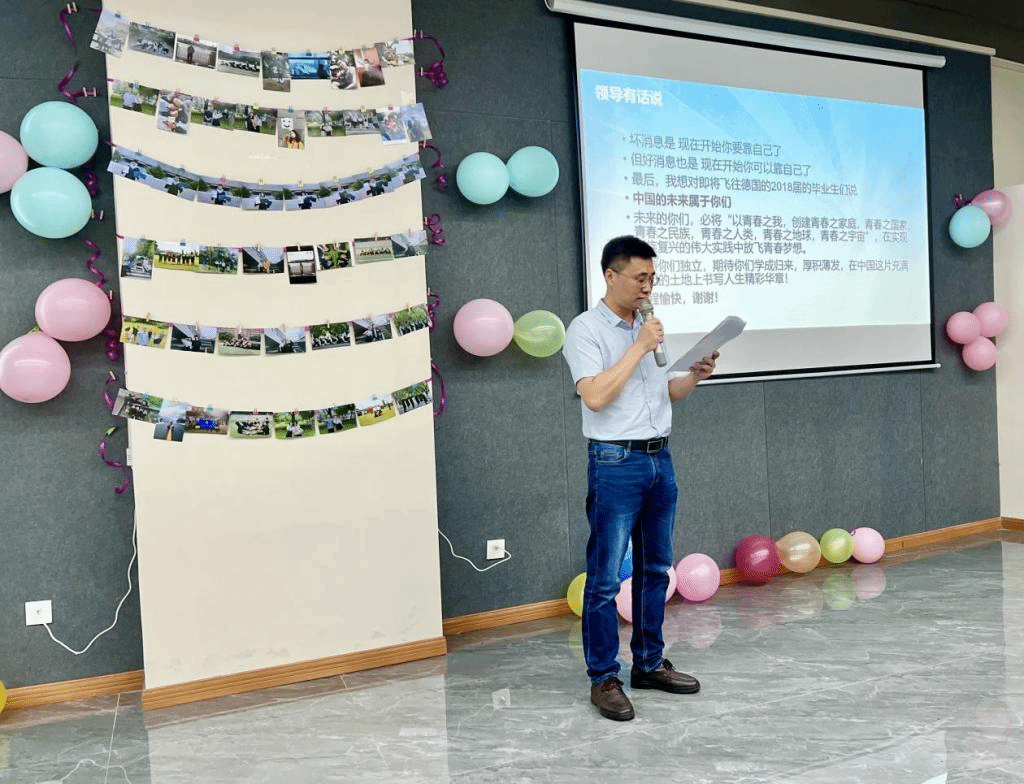 会议由2018级FOM本硕连读国际班的毕业生代表致欢迎辞并拉开了序幕。首先,校长助理兼淬炼•国际商学院院长张平向全体师生致辞。全英文的演讲中,既肯定了同学们在大学四年学习生活中的优异表现,同时也表达了对他们未来留德征程的美好祝愿。最后,张院长希望毕业班的同学们不忘初心、牢记使命、砥砺前行、不负韶华、只争朝夕、学贯中西、回报社会。现场气氛热烈、掌声雷动。