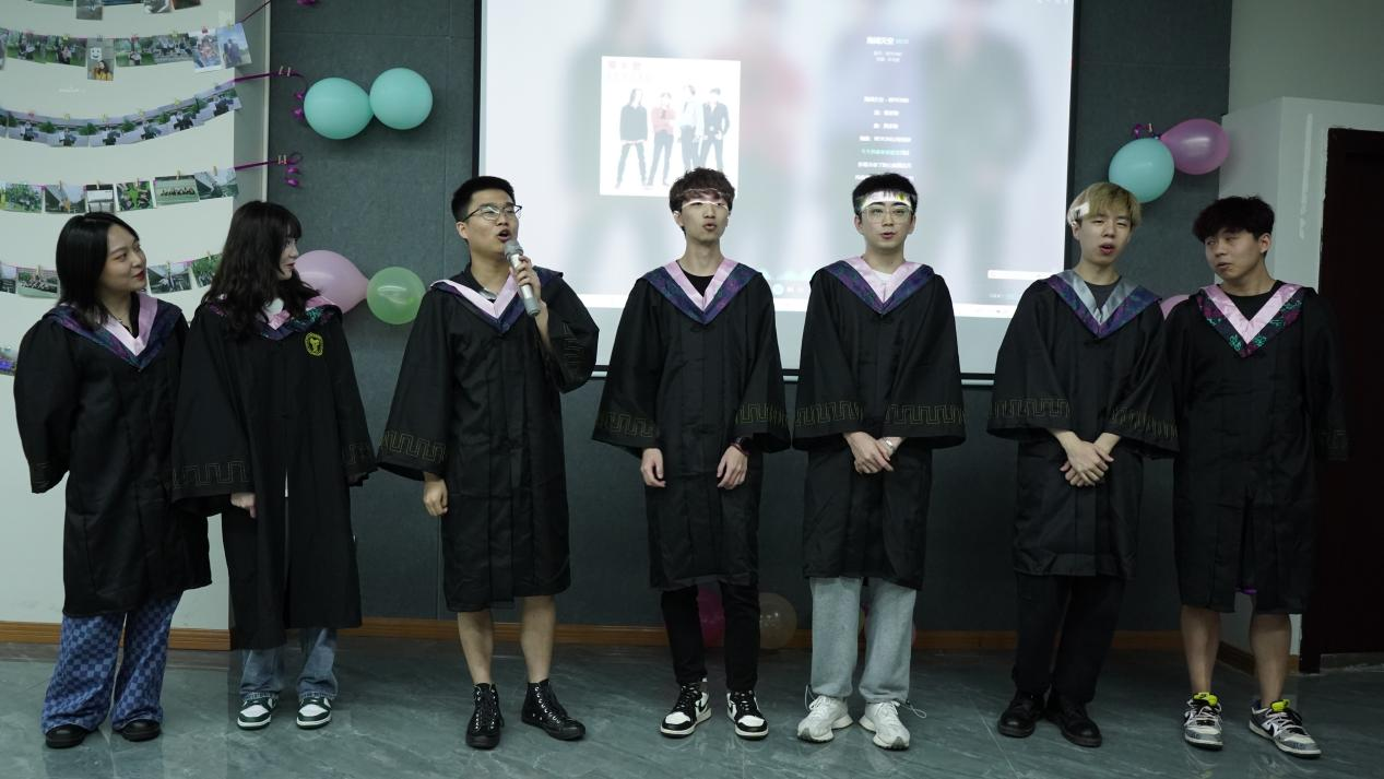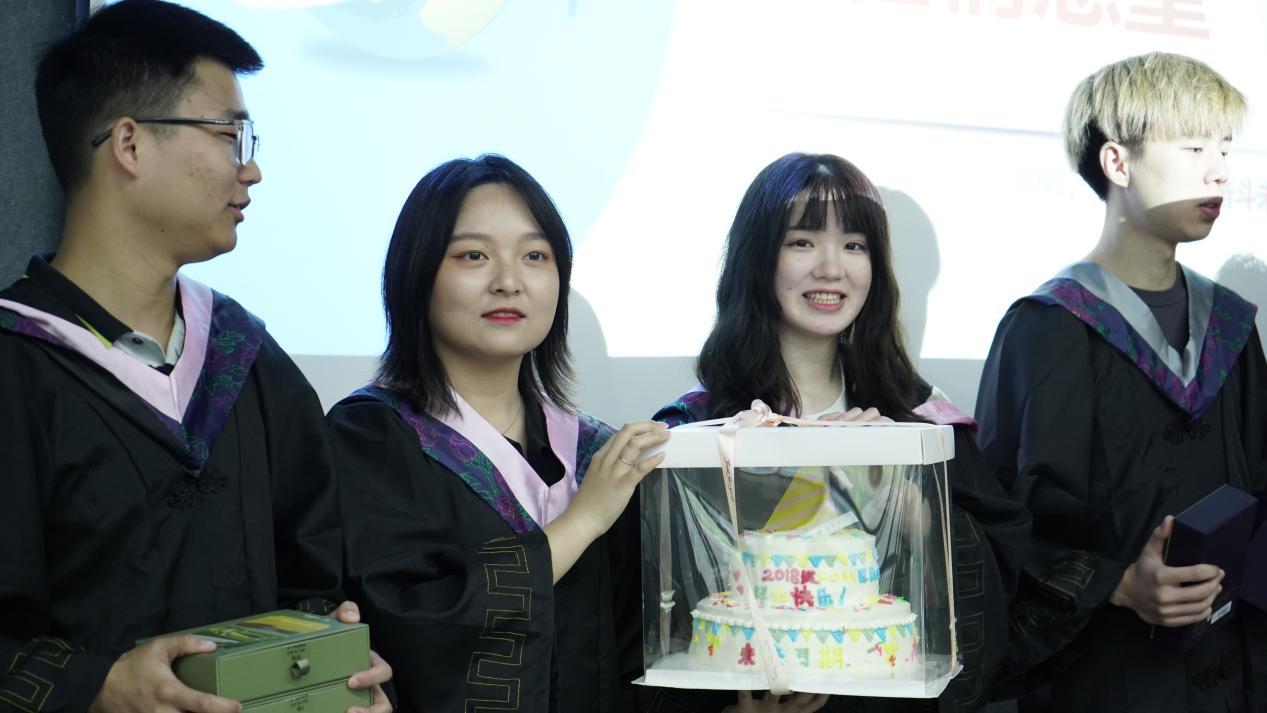 随着亚洲第一摇滚乐队Beyond的一曲《海阔天空》,现场氛围被推向了高潮。这首勾起无数80后儿时回忆的经典曲目,却在那些00后的青春少年们的口中唱出了对未来的憧憬和向往,同时也唱出了这一代人的激情和勇气。一曲唱罢,校长助理张衍学、淬炼国际商学院副院长曾璐共同将精美的蛋糕和毕业礼物送到同学们的面前。蛋糕不仅寓意着收获、顺利和喜悦,更寄托了老师对于同学们的深切祝福,愿他们前程似锦、一帆风顺。
