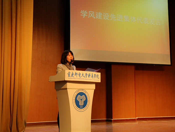 学风建设先进集体代表计算机科学系辅导员任瑞娟,分享了他们在学风建设方面的工作经验。 她“以专业特色为核心,兴趣导航营造氛围”为主题从四个方面进行了阐述,思想统一目标精准,组建团队齐抓学风;强化专业技能,联谊教工齐发力,课堂文明促新风;兴趣导航融入大完满,完满教育促进学风建设;思不足做改进。并指出:道不可坐论,德不能空谈,于实处用力,从知行合一上下功夫。还引用《礼记》中的“博学之,审问之,慎思之,明辨之,笃行之。”告诉所有学生这是我们应当践行的准则。