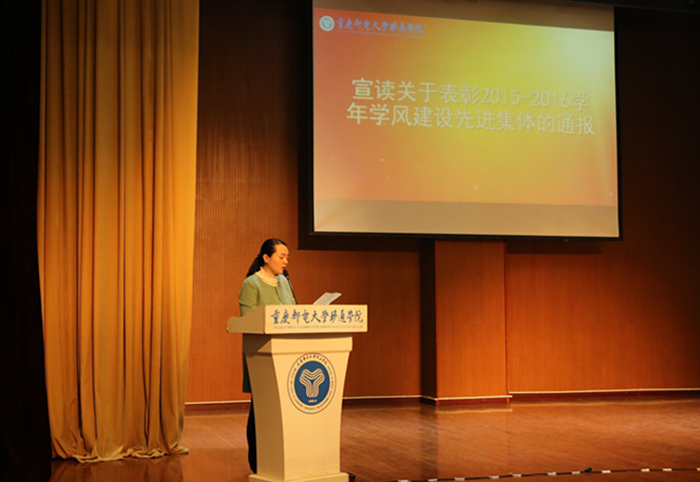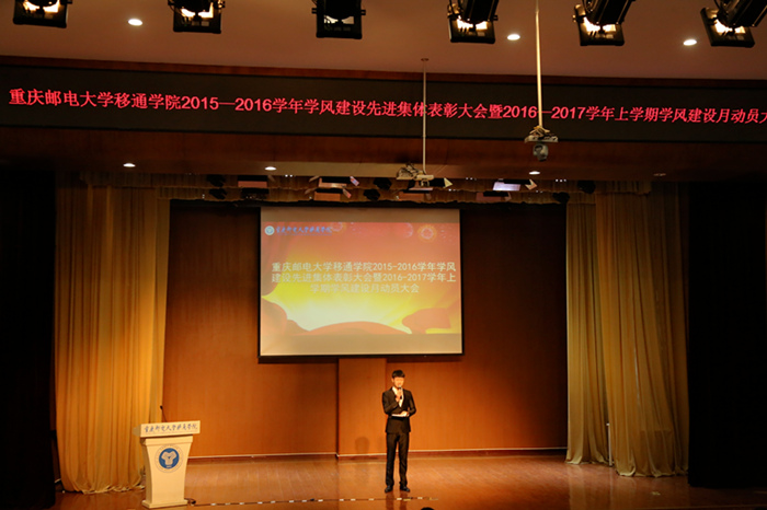11月16日下午,我校在下里巴人剧场隆重举行2015-2016学年学风建设先进集体表彰大会暨2016-2017学年上学期学风建设月动员大会,院长张德民教授、副院长王征、院长助理周伟、学生处副处长陈家凤、教务处副处长刘枚、计算机科学系系主任郑先锋、教学督导办公室邓玲以及各院系学生工作办公室主任和辅导员参加了本次大会。