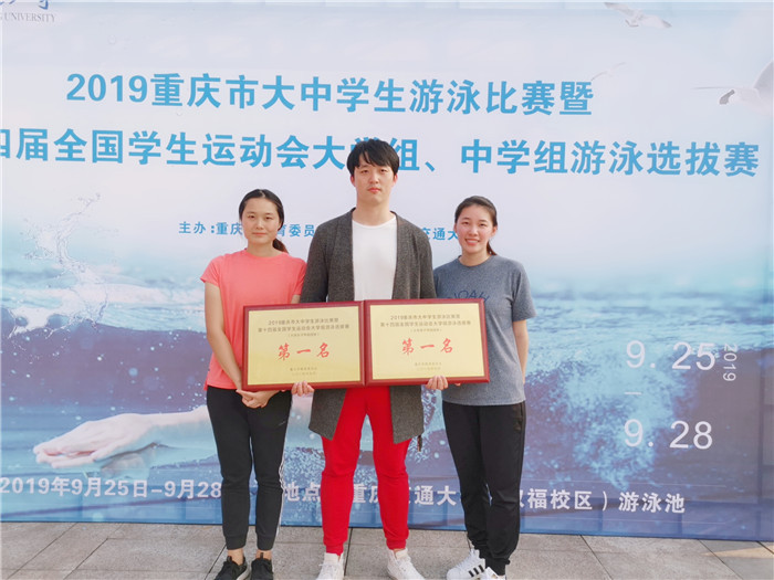 9月25至9月28日,由重庆市教委主办的2019重庆市大学生游泳比赛暨第十四届全国学生运动会大学组游泳选拔赛在重庆交通大学双福校区如期举行。我校游泳队由罗聪(男队)、黎曼琳和王钰涵(女队)三位教练率队参赛。经过两天的激烈角逐,最终我校游泳队再创佳绩,男女队再次包揽了男子、女子甲组团体总分第一名的好成绩。这也是我校游泳队连续第四年获此殊荣。