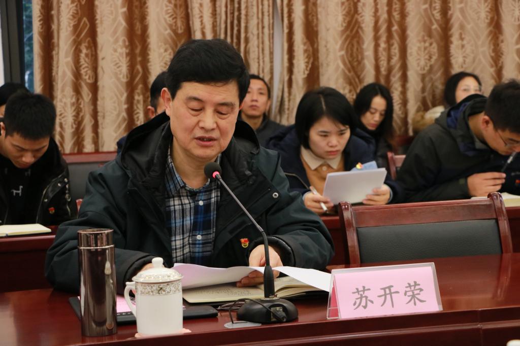 党委书记、学校主题教育领导小组组长苏开荣教授对学校开展主题教育情况进行总结。他指出,主题教育开展期间,我校主题教育领导小组以高站位谋划、高标准组织、高要求实施,把主题教育各项任务具体化、精准化、差异化,确保学习教育深学细悟、调查研究深入基层、检视问题破旧立新、整改落实动真碰硬一体化推进,深入推动主题教育在全校范围内由点到面、自上而下,全方位、多层次扎实有序开展。引领师生以实际行动来推动工作和学习,坚持做到学思践悟贯通、知与行合一。激励广大师生深怀爱国之情、砥砺强国之志、力践报国之行,筑牢理想信念、锤炼党性品格,推动主题教育落地生根。面对主题教育取得的初步成效,需要保持政治清醒,认真总结反思,深刻认识存在的问题和不足。下一步,我们将以习近平新时代中国特色社会主义思想为指导,坚持问题导向、目标导向和成果导向相统一,持续抓好学习教育、调查研究、检视问题和整改落实,不断巩固扩大主题教育成果。