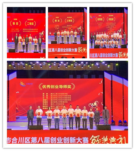 重庆市合川区第八届创业创新大赛是由中共重庆市合川区委、重庆市合川区人民政府主办,合川区人力社保局等部门共同承办。本次创业创新大赛从3月初开始至今共历时4个月。大赛期间受到社会各界人士的广泛关注和创业大学生的积极参与,我校在本次大赛共报名251支团队1255余人(合川区参赛项目共793个,参赛人数2929人),13支队伍进入复赛(793进50)、6支队伍进入决赛(50进30),并最终获得创意组银奖2项,铜奖1项,优秀奖2项,我校就业创业指导与服务中心杨德龙老师获得“优秀创业导师”(合川区仅8人)。