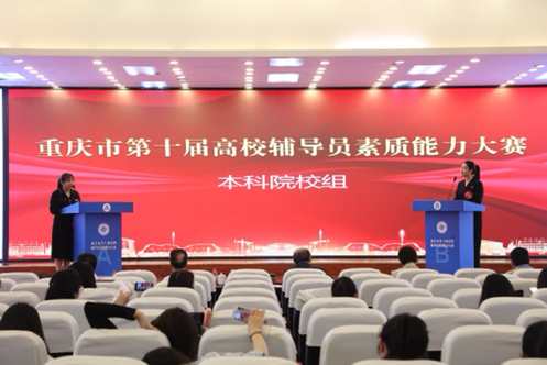 本次大赛由中共重庆市委教育工委、市教委主办,重庆文理学院承办。大赛根据国赛赛制设置了基础知识测试、案例研讨和谈心谈话三个环节,在基础知识测试环节,考察范围较广,内容较细,包括党的创新理论、四史知识、高校思想政治工作的重要会议及文件精神,全方位考察辅导员的理论素养和业务知识储备;在案例研讨环节,以“我提问,你回答”的方式开展,要求两位选手围绕案例共同辨析原因、探讨对策、总结规律;在谈心谈话环节,选手结合谈话情况进行简短总结并回答评委问题的内容。赛场上,苏盼盼老师沉着冷静、稳定发挥,与公办学校辅导员对垒毫不逊色,充分展示了其过硬的专业技能。