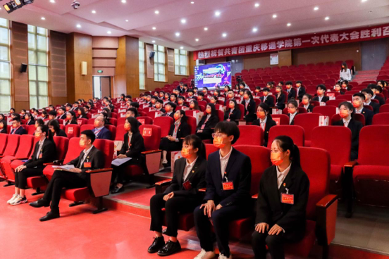 上午9点50分,按照重庆市疫情防控相关要求,大会在下里巴人剧场、六度空间·大 学生发展中心(105℃学术报告厅)两个会场隆重开幕,共青团重庆市委副书记黄永宜,校党委副书记、副校长周伟,校党委委员、副校长李文豹,共青团重庆市委高校部副部长张胡静,共青团合川区委副书记罗云,校党委组织宣传部部长苏述庚、学校各职能部门和各学院团总支负责人以及200名团代表共计230余人参加开幕会,大会由校团委书记谢银平同志主持。