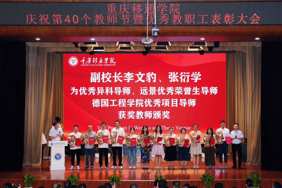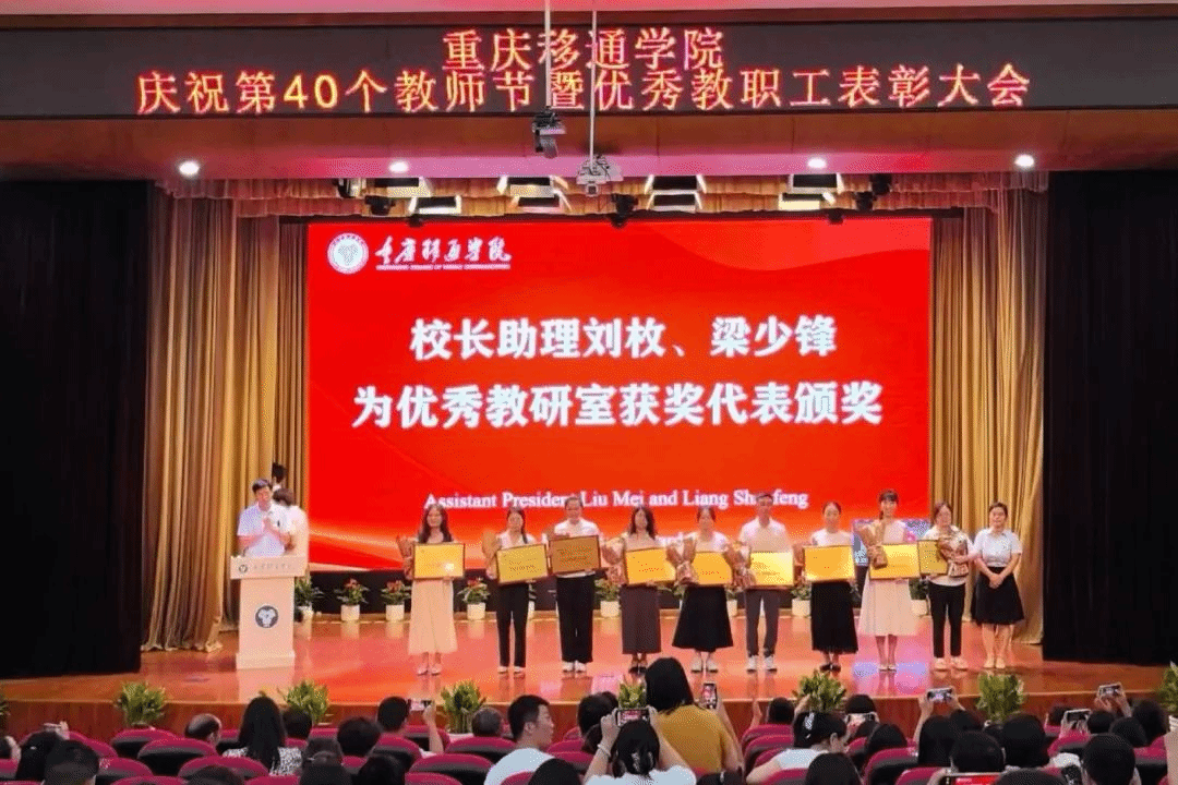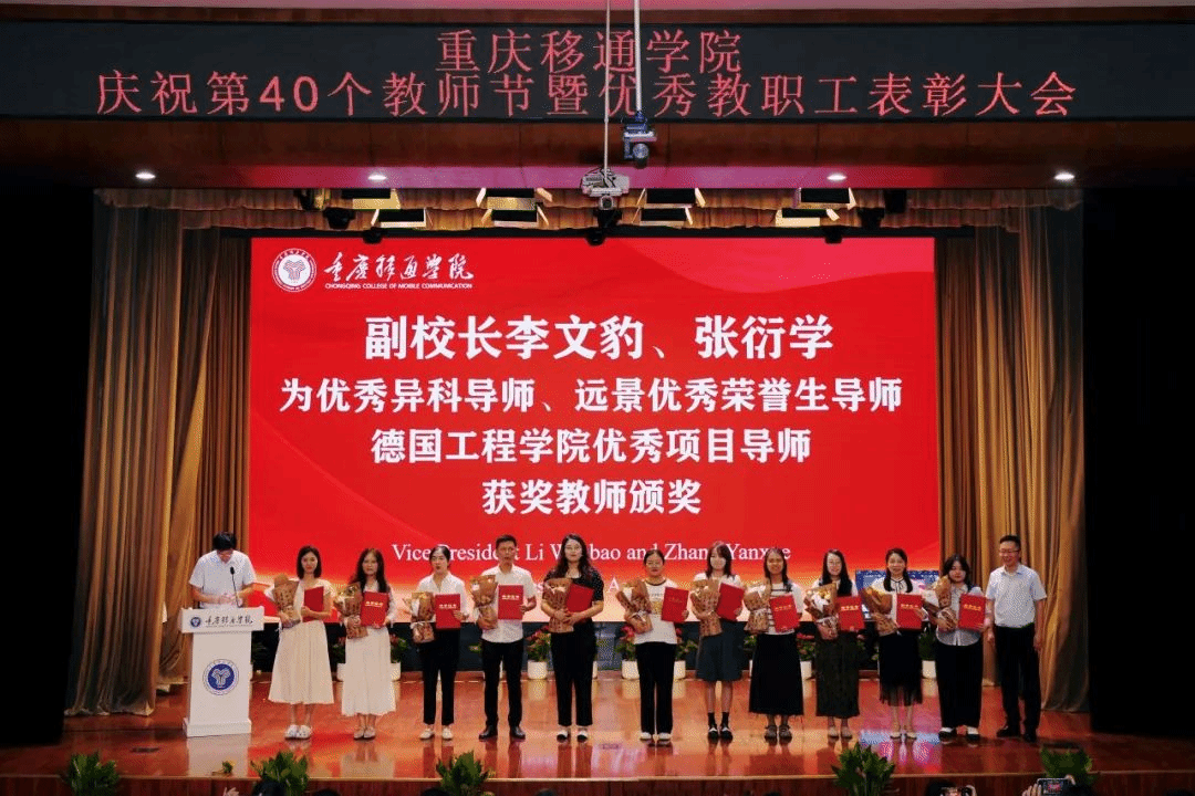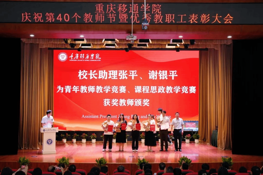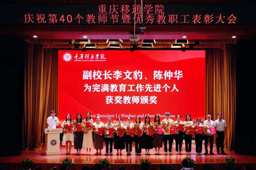9月10日,我校在合川校区下里巴人剧场、綦江校区綦艺大剧院同步召开庆祝第40个教师节暨优秀教职工表彰大会。全体在家校领导、各二级单位负责人、科级及以上管理干部、教研室负责人、团总支书记、学工办主任、就业办主任、行政主管、书院执行院长、综合办公室主任、团委中心主任、双体软件精英产业学院经理、受表彰教师、教师代表以及全体新进教师出席了大会。