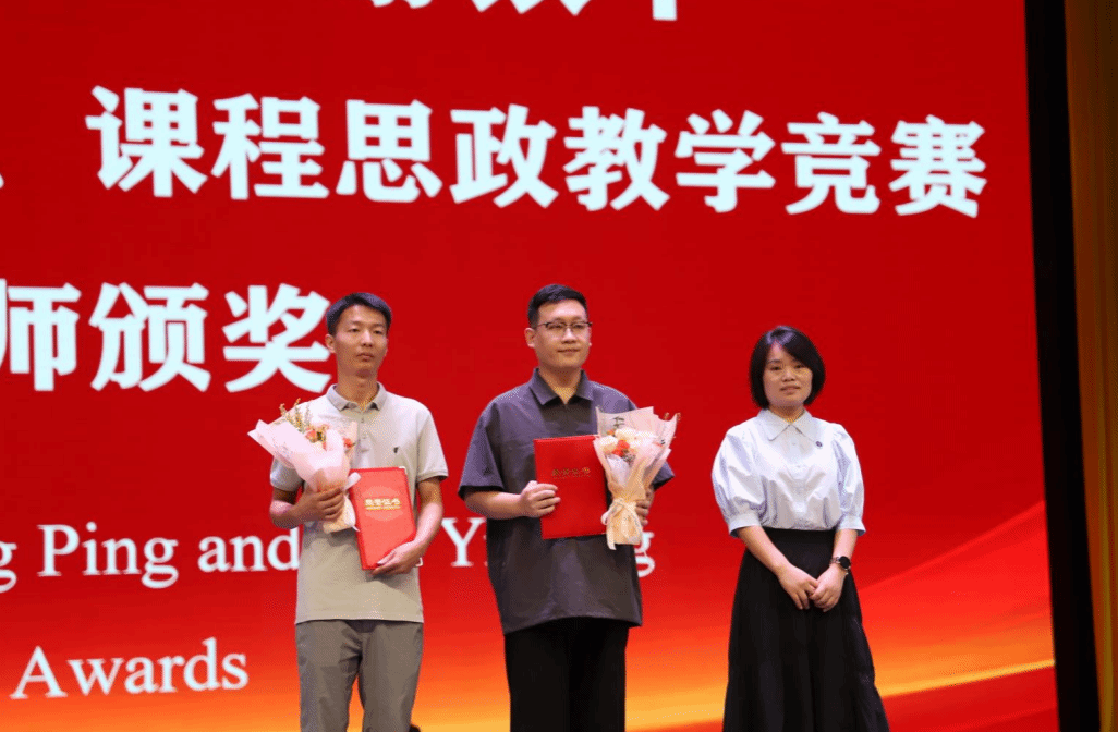 校长助理张平、校长助理谢银平为青年教师教学竞赛一、二、三等奖;课程思政教学竞赛一、二、三等奖获奖老师颁奖。