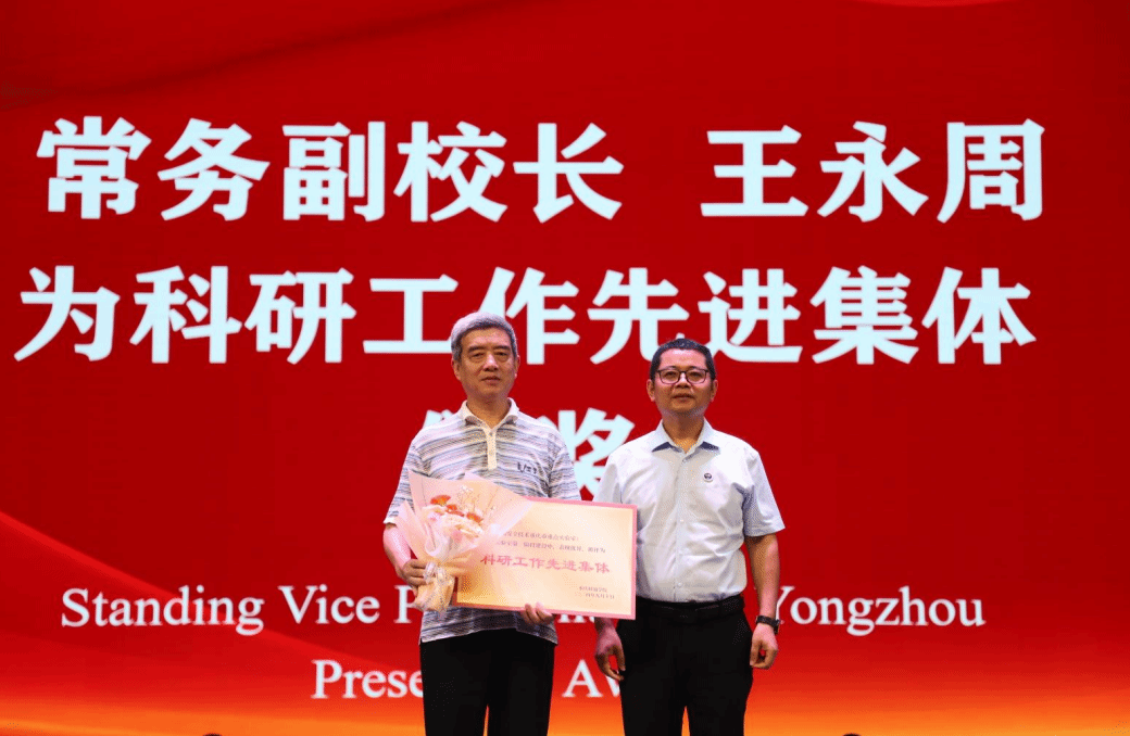 常务副校长王永周为科研工作先进集体颁奖。