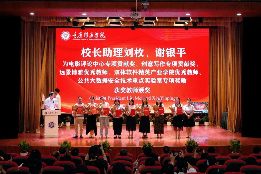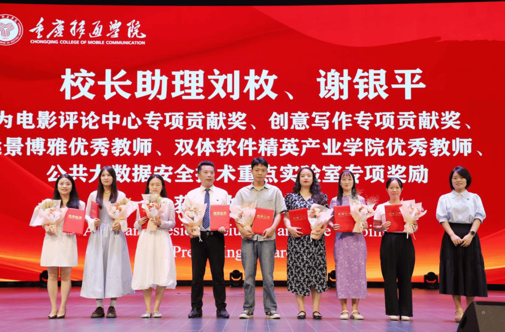 校长助理刘枚、校长助理谢银平为电影评论中心专项贡献奖、创意写作专项贡献奖、远景博雅优秀教师、双体软件精英产业学院优秀教师、公共大数据安全技术重点实验室专项奖励获奖教师颁奖。