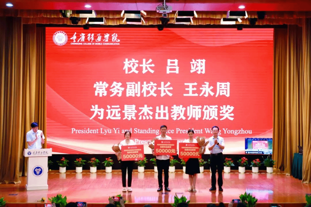 校长吕翊、常务副校长王永周为远景杰出教师颁奖。