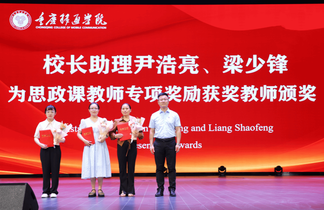 校长助理尹浩亮、校长助理梁少锋为思政课教师专项奖励获奖教师颁奖。