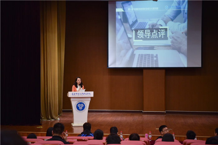 最后,学院副院长王征提出了自己的感受,她肯定了每位参赛老师的现场表现,同时也指出了一些不足。老师们在解决学生的问题时,要注重对症下药,针对每个学生自身状况,适当的引导,而不能只是表面化的谈话。她还强调与学生谈心谈话时,要多关注学生情绪,不一定要说服学生;要以商量的口吻,使学生更加理性的看待问题;要以学生为中心,多积累、多学习。最后王院长告诫全体完满教育教师:要给彼此一份力量;要给自己一份动力;要给学生一种改变,不断创新、与时俱进才能走好我们的完满之路。