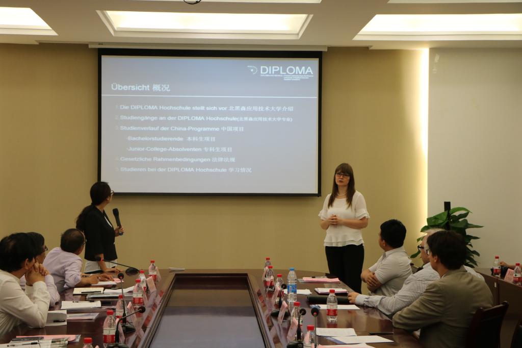 北黑森应用技术大学院长Zilling女士首先感谢了我校对于本次会议的筹备与安排,并介绍了北黑森应用技术大学的情况。她介绍道:“北黑森应用技术大学正式成立于1994年,总校设在德国巴特·苏登-阿伦多夫校区(位于法兰克福市附近),是德国政府承认的私立大学,拥有丰富的师资力量并在欧洲有众多分校。教授均为具备丰富管理经验和教学资格的工商界人士。目前,北黑森应用技术大学共有150位大学教授,此外还有450名资深的客座讲员。”她围绕学校概况、专业设置、中国项目、本科生项目、专科生项目、法律法规、赴德学生的学习情况共七个方面,对北黑森应用技术大学中国合作项目进行了详细的介绍,重点介绍了北黑森应用技术大学中国合作项目的本科生与专科生项目的情况以及包括学分认证、专业选择在内的相关法律法规。