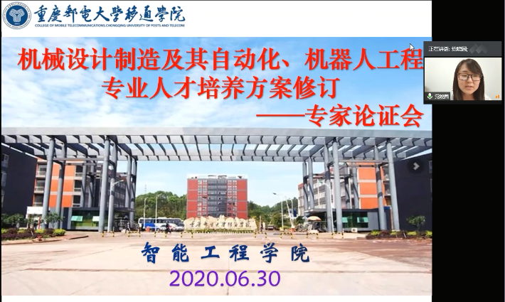 6月30日19:00,由于疫情原因,智能工程学院通过腾讯会议在线上召开了机械设计制造及其自动化、机器人工程专业人才培养方案修订论证会,就两个专业的人才培养目标、培养要求、课程设置、特色方向等内容进行了深入探讨。校长助理兼教务处处长刘枚,重庆邮电大学、重庆交通大学专家,重庆四联测控技术有限公司、重庆大江动力设备制造有限公司、重庆华数机器人有限公司、重庆红亿机械有限公司等企业专家代表,以及智能工程学院教师代表参加了会议。会议由智能工程学院教学副院长李洁主持。