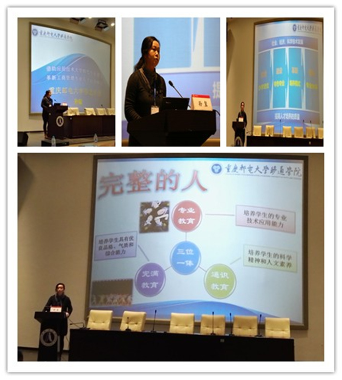 在参会的43所会员单位面前,孙玺主任向嘉宾和专家们介绍了我校工商管理专业在特色专业建设过程中,从三个方面打造特色。与同类高校相比,我校工商管理专业打造信息产业与通信行业运营管理的行业特色;与主办院校重庆邮电大学相比,我校工商管理专业借助“专业教育+通识教育+完满教育”的育人模式,打造人才特色;与本校其他专业相比,开设两个与市场发展相适应的专业方向,打造应用特色。孙玺主任的发言引起了参会代表的极大兴趣,在会场中途休息时,福州学院、贺州学院等学校的参会专家继续与孙玺主任做了深入交流。