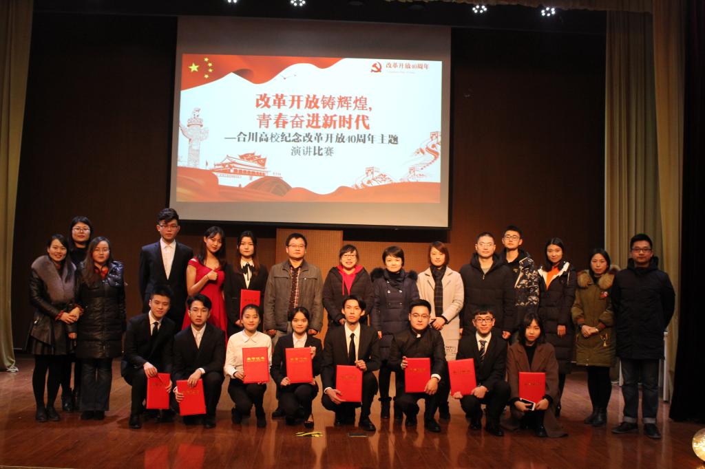 为广泛宣传改革开放四十年来中国社会发展取得的辉煌成就,弘扬改革创新精神,切实加强校园文化建设,提升大学生演讲能力。12月14日,由重庆邮电大学移通学院、重庆工商大学派斯学院、重庆师范大学涉外商贸学院联合举办的“改革开放铸辉煌,青春奋进新时代”——合川高校纪念改革开放40周年主题演讲比赛决赛在重庆邮电大学移通学院下里巴人剧场成功举行。