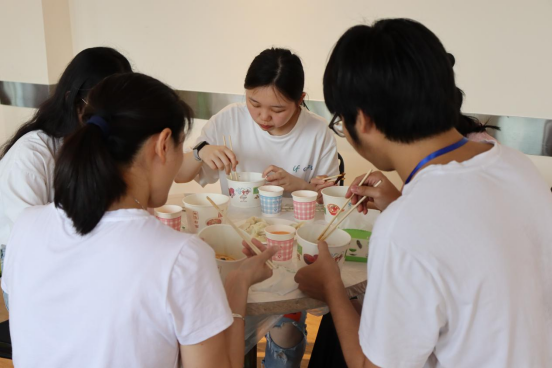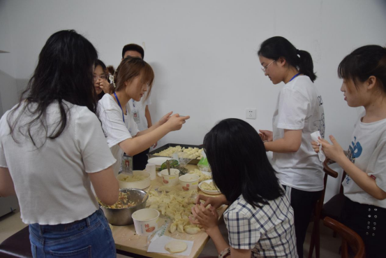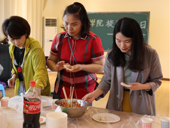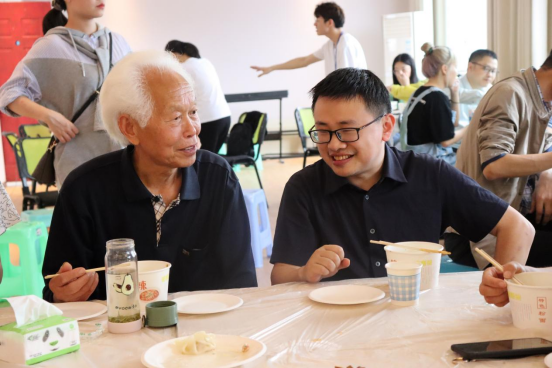 十二点整,家长与子女、教师在远景楼茶话室共膳,大家一同包饺子,体验做饭的乐趣,享受劳动的成果,在共膳过程中,老师与家长交流,有家长表示“自己的孩子以前比较内向,来到远景学院以后,我感觉他变得更加自信了,找到了自己的专业兴趣,也更善于表达,敢于参加各类活动”,也有家长表示“孩子们能够在远景学院自己做饭,大家相互交流,也锻炼了他们,让自己的孩子现在也能主动参加劳动”,在就餐过程中,王有超老教授还不忘与学院老师交流,表示愿意为远景学院的育人工作做出自己的贡献,积极搭建校企、院校之间的合作平台,促进远景学院的各项工作。学院师生与家长们品尝同学们制作的水饺,畅谈着学生与学院的发展,度过了温馨而又难忘的午餐。