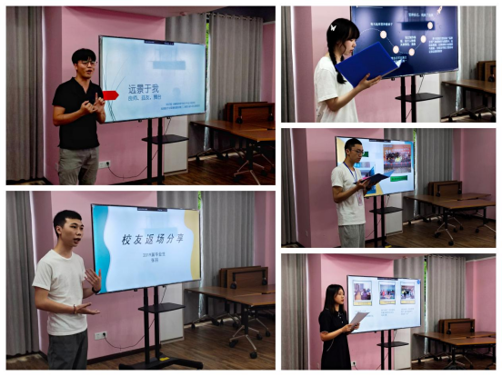 下午两点半,来自大一到大四的同学们在爱莲书院向家长汇报了自己大学的成长与收获,来自2015级的校友张羽给家长们讲述了自己成长的经验,大一动画专业陈子墨同学汇报了一年来的变化与成长,满满的收获溢于言表,远景的氛围让她坚信自己定能变得更加优秀;大二的江雨枭同学从自己参与志愿服务经历说起,讲到学校的完满教育对他的帮助颇多,也让他在参与志愿服务工作中找到了自己努力的方向;大三的张入月同学则从最初父母担忧学生参加很多活动耽误学习,到现在成为一名品学兼优的学院主要学生干部向在座家长讲述了如何做好生涯规划,不断尝试与突破;大四的侯美钊同学从自己能在远景接收小班化的教学、导师个性化指导,自己有机会参与NIU国际交流项目说起,十分感激学院的培养,特别是在远景学院找到了自己对于英语的兴趣并不断发扬,以优异的成绩通过四六级考试以及口语考试,最终在重邮打败诸多面试竞争对手,成功入职中国通信建设第三工程局有限公司海外项目管理岗位;最后就职于四川省宜宾市税务局的张羽学长结合自己在远景学院担任学生干部,撰写策划方案以及新闻稿的经历以及积极参与诸多实践对自己后期考公的帮助讲起,分享了自己的成长经历以及远景学院带给他的成长与帮助。分享会后,家长们与同学进行了交流讨论,深入了解了这些学生的成长历程,也咨询了相关的问题,解答了家长对于子女发展的诸多问题。