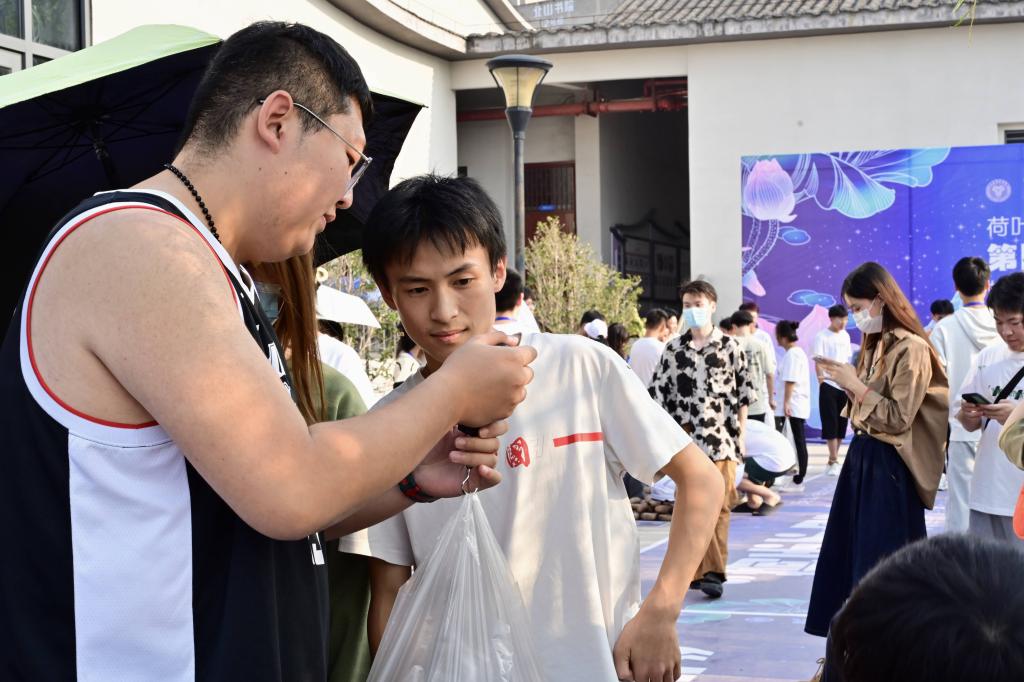“2019年初识荷塘文化节是兴趣使然,做荷花灯、布展,希望每位参与者能从一花一叶中感受到我们的热情与欣喜。2020年疫情袭来,满池荒芜不仅让关注荷塘文化节的众多师生们感到可惜,我作为组织者也难免失落。2021年阔别一年的荷塘文化节重磅回归,从策划到实施,从人员分工到物资准备,五个子活动纷至沓来,这一年的喜悦不仅是1600斤莲藕的丰收,更是对每一位完满人的鼓励!2022年在我即将离校之际,终于亲身体验了一次采藕的乐趣与艰难,从围观者到组织者、再到真正的体验者,三年荷塘梦不再遗憾。”2019级别都书院大数据与计算机科学学院邓胜婷兴奋地说到。
