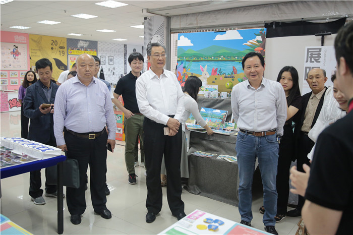 5月16日上午11时,山东科技大学党委副书记王少鹏一行前往图书馆参观艺术传媒学院2019届毕业生毕业设计展,莅临现场的领导有重庆邮电大学移通学院校长张德民、山东科技大学党委副书记兼泰山科技学院党委书记王少鹏、山东科技大学泰山科技学院教务部主任耿献文、山东科技大学泰山科技学院党政办公室副主任孙善清、山东科技大学泰山科技学院信息工程系主任刘纪敏;重庆邮电大学移通学院校长助理兼教务处处长刘枚、重庆邮电大学移通学院院办主任张衍学、重庆邮电大学移通学院团委书记李文豹。艺术传媒学院副院长李轶天、教学副院长龚晓雪陪同,数字媒体艺术教研室主任李如冰、动画教研室主任黎珂位负责讲解工作。