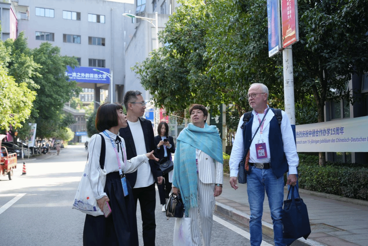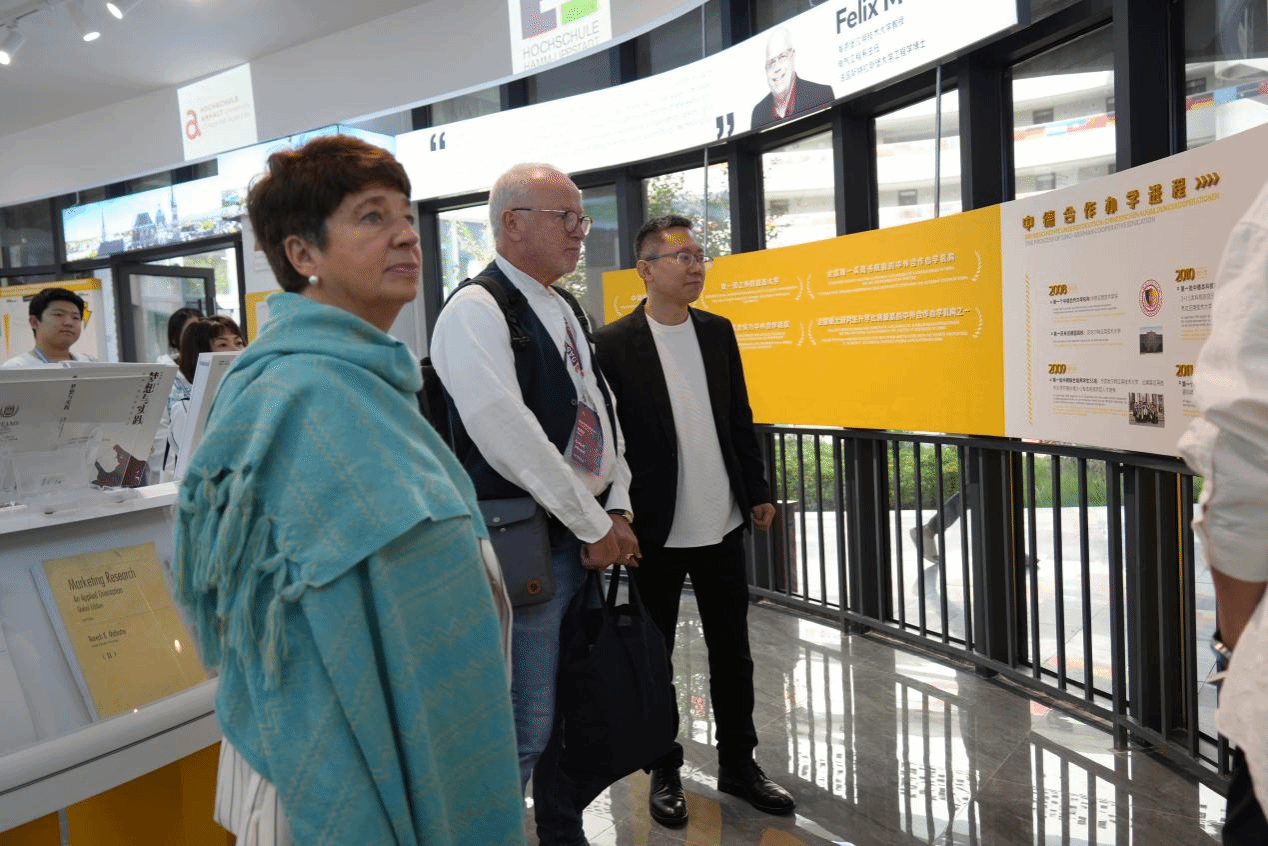 会谈结束后,德国高校代表一行参观了我校南湖书院。参观过程中,德国代表们对我校现代化的书院设施、文化氛围浓厚的书院生活、设备齐全的健身房以及风景如画的书院景观留下了深刻印象,纷纷表达了对我校教育环境和教学资源的赞许。