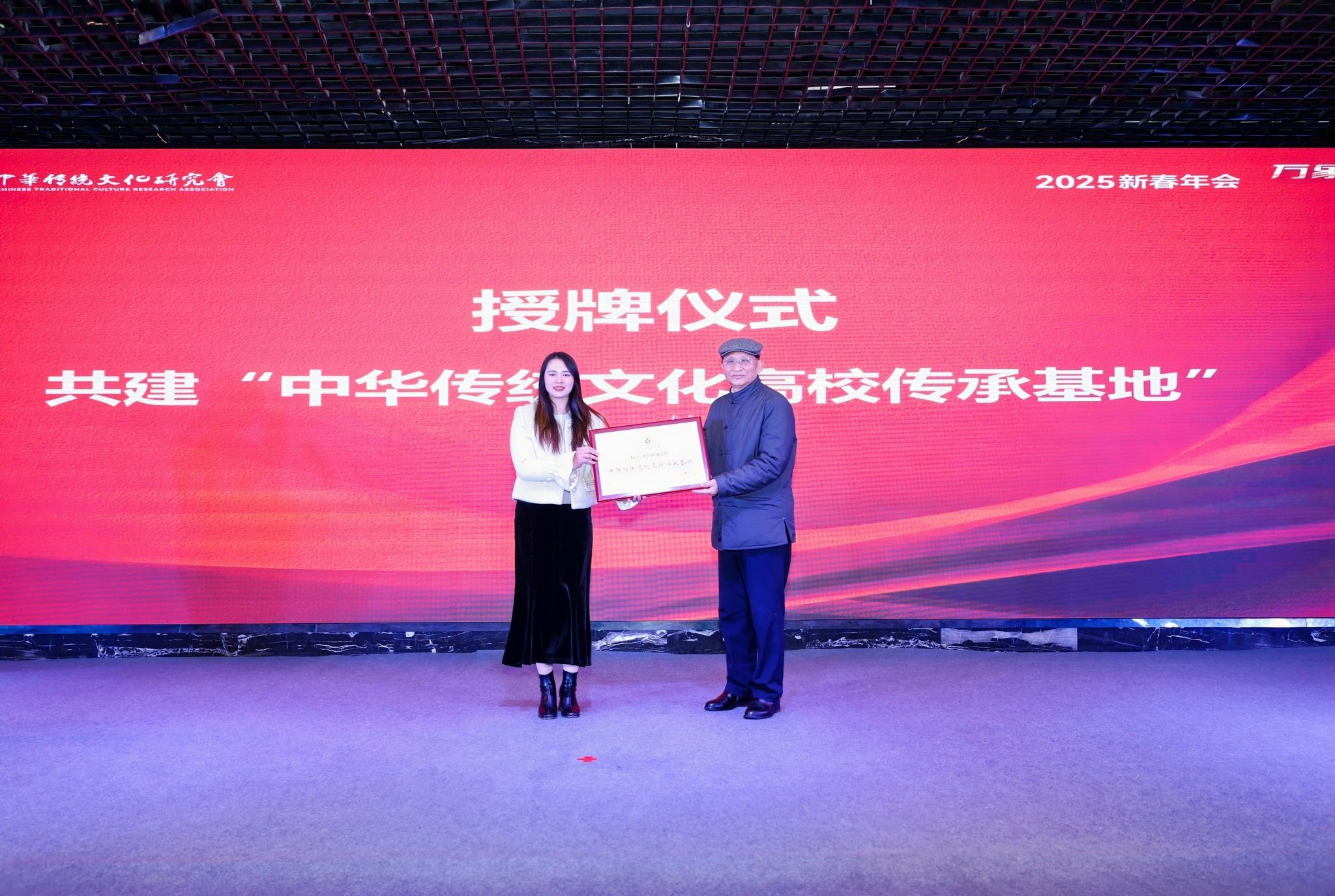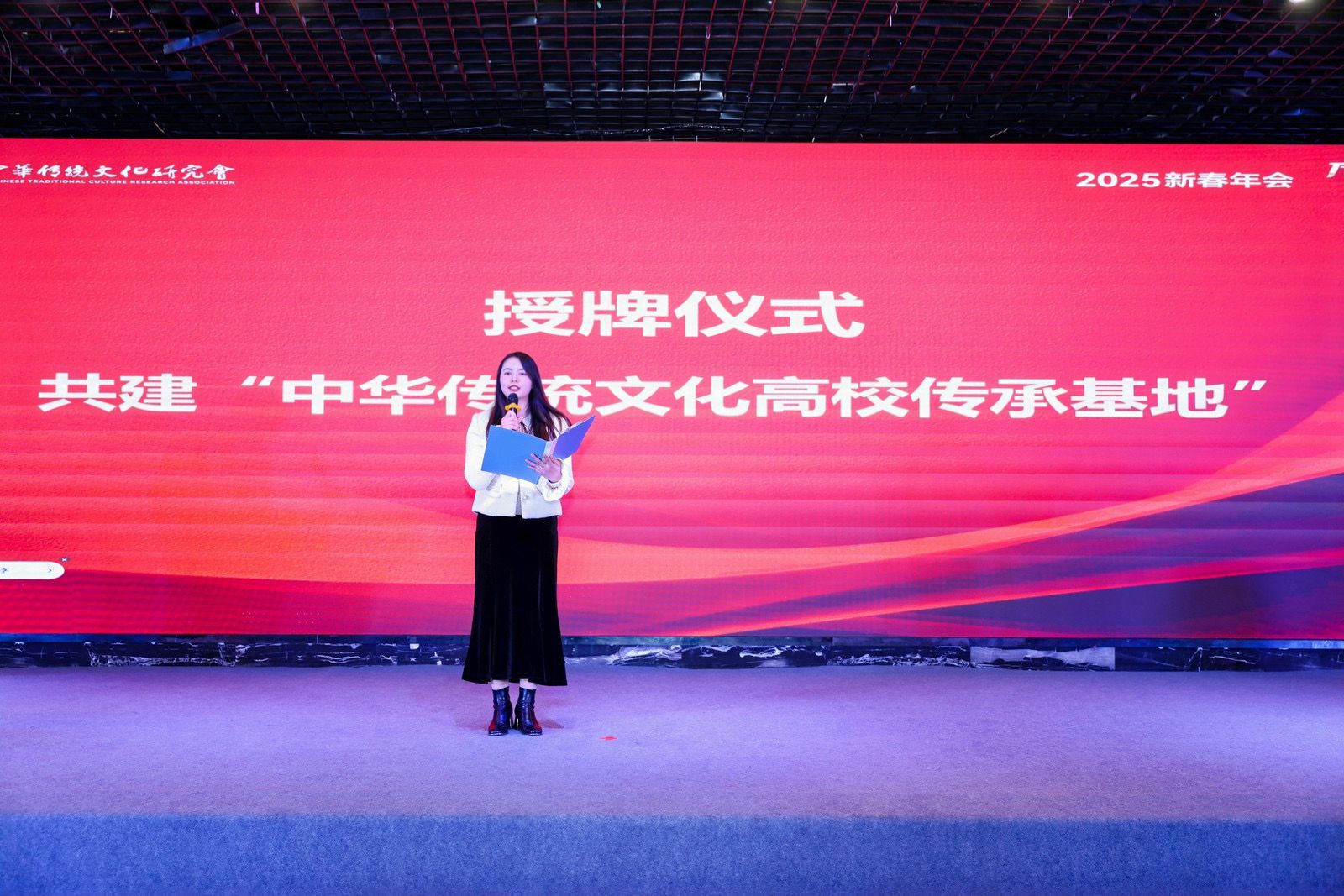 2025年1月11日,重庆中华传统文化研究会在重庆两江新区丽呈君顿酒店盛大召开了2025年新春年会。此次盛会吸引了300余位智库精英、知名文化学者及杰出企业家共襄盛举,我校花果书院的吴静与胡霁贤老师也应邀参会。在此次年会上,重庆移通学院作为全市唯一高校代表荣获“中华传统文化高校传承基地”称号,这标志着我校在中华优秀传统文化的创新传承与发展方面取得了重要突破和认可。
