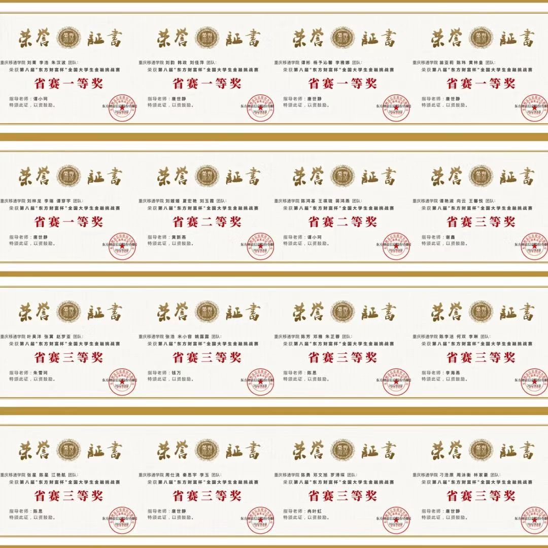 为加强大学生的金融实践,增强金融安全意识,提高金融实践能力,建立内容丰富、形式新颖、成效显著的金融实践育人体系,由共青团中央青年发展部主办,全国学校共青团研究中心,东方财富信息股份有限公司承办的第八届“东方财富杯”于4月拉开序幕,历时三个月,于7月正式落下帷幕,移通学子再创佳绩,斩获1个一等奖、1个二等奖和2个三等奖。