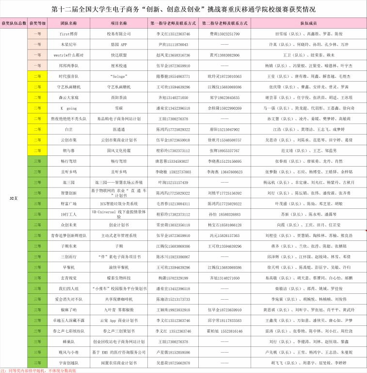 (第十二届全国大学生电子商务“创新、创意及创业”挑战赛重庆移通学院校赛获奖情况)