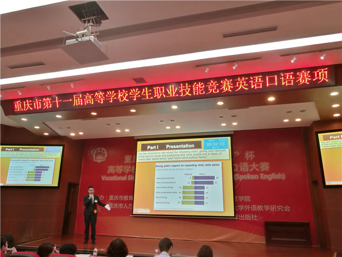 3月31日,2018“巴渝工匠”杯重庆市第十一届高等职业院校学生职业技能竞赛英语口语大赛在重庆科技学院成功举行。该大赛由重庆市教育委员会和重庆市人力资源和社会保障局主办,高等教育出版社、重庆市大学英语教学指导委员会、重庆科技学院联合承办。在外语系老师的悉心指导下,经过竞赛场上的激烈角逐,我校学生史迪文同学以优异的成绩喜获本科组二等奖。