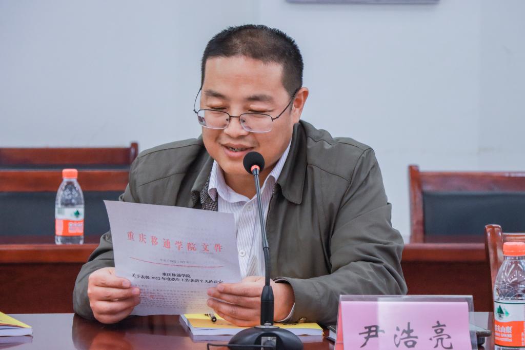 校长助理尹浩亮宣读了关于表彰2022 年度招生工作先进个人的决定,并向荣获招生先进个人代表举行了颁奖仪式。