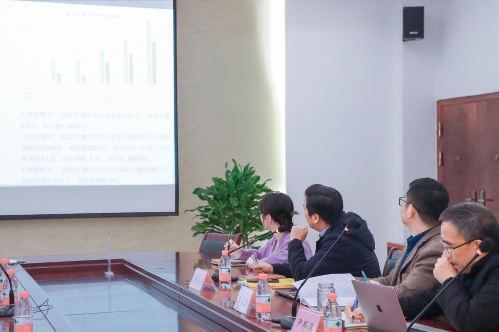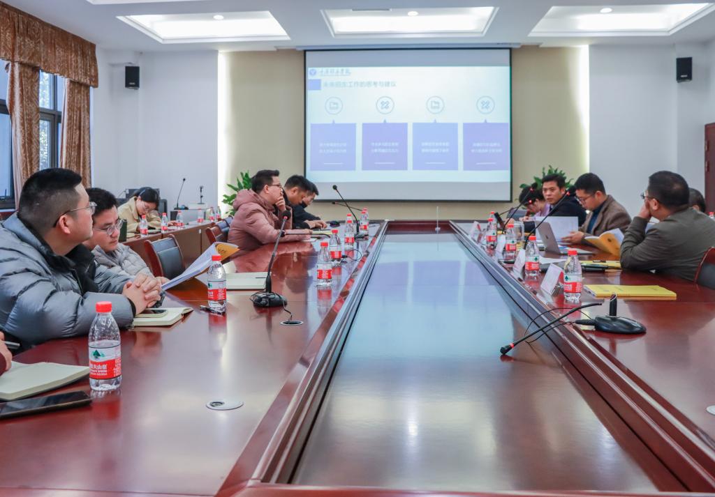 招生处处长张成川首先从全国及重庆生源情况、我校招生整体情况、开展情况等六个方面进行了回顾,并对未来工作提出了思考建议。2022是奋进与圆梦的一年,在集团、学校领导的统一部署下,招生团队凝心聚力,共克时艰,面对新冠疫情、持续高温,招生工作稳中有进,圆满完成招生指标。