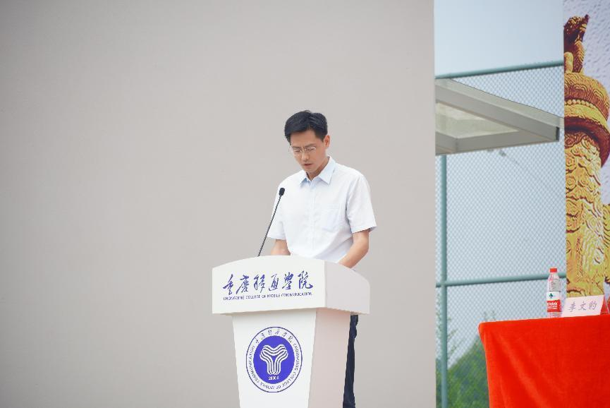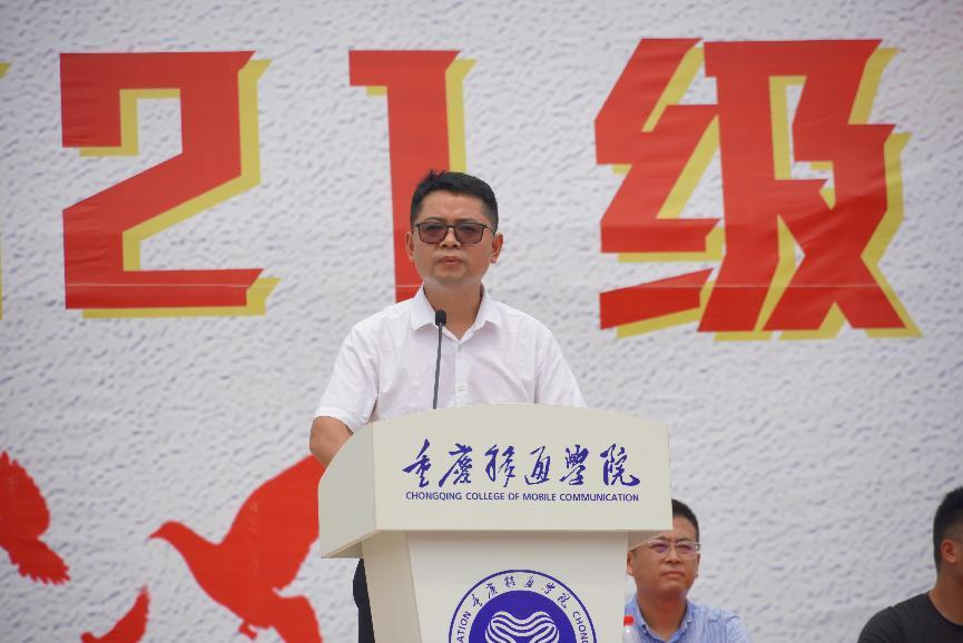 常务副校长王永周代表学校全体师生,向承训教官致以崇高的敬意,向支持我校军训工作和国防教育的綦江区人民武装部表示衷心的感谢。在讲话中,他提到,重庆移通学院建校20余年,学校始终坚持以学生全面发展为中心,经过探索与实践,创新凝练出与教育理念相符的四位一体双院制人才培养模式。綦江校区,实现了当年开工,当年开学的綦江效率,移通速度,在高速、高质量的发展过程中,学校始终时时刻刻把同学们的成长发展诉求放到首位,关注与陪伴同学们成长、完满。对于此次军训他表示,军训是大学的必修课,同学们要珍惜这种为数不多挑战自我、锻炼坚忍不拔意志的大好机会,让优良的作风和严明的纪律在心中扎根,成为伴随同学们一生的巨大精神财富。最后,他预祝本次军训取得圆满成功,预祝同学们在军训中取得优异成绩。
