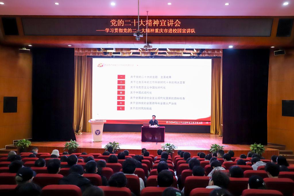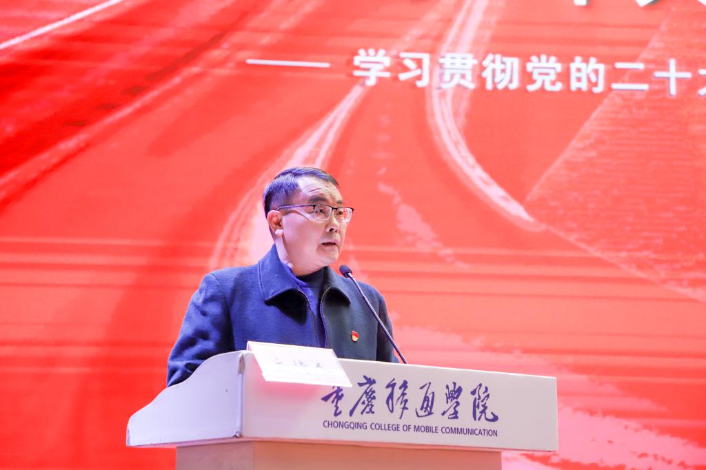 为了学习好、宣传好、贯彻好、落实好党的二十大精神,2月27日,党的二十大精神重庆市进校园宣讲队成员、重庆市教委二级巡视员刘先海同志走进我校为师生作学习贯彻党的二十大精神进校园宣讲报告。校党委书记何先刚主持了报告会。在校校领导、各基层党组织负责人、各部门和二级学院负责人以及师生代表等共计380余人参加了会议。